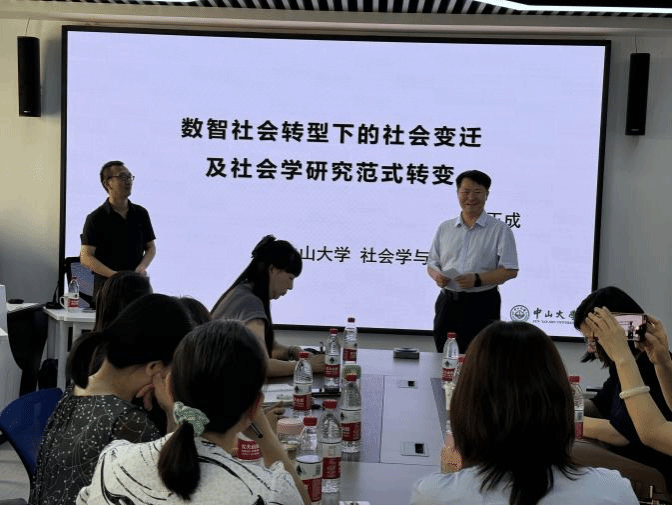 讲座中,梁玉成教授围绕四个方面就数智社会转型下的社会变迁及社会学研究范式转变进行了深入剖析与讲解。一是中国有关数智社会转型的社会变迁,从发展范式演变历史、顶层设计、数字社会治理、数字经济发展情况等方面介绍了中国社会正在经历的深刻变革。二是数字社会的社会结构分化,强调数智社会带来了新的角色分化,技术进步在一定程度上加剧了社会不平等。三是数智社会转型下社会认知结构的变化,阐释了技术发展如何改变人们的认知模式和思维方式,这种变化对社会学研究提出的新挑战和要求。四是基于大模型的社会学研究新范式,就如何利用大数据和人工智能模型进行社会学研究进行了深入解读。报告历时四个小时,现场氛围高涨,师生均表示受益良多、深受启发。