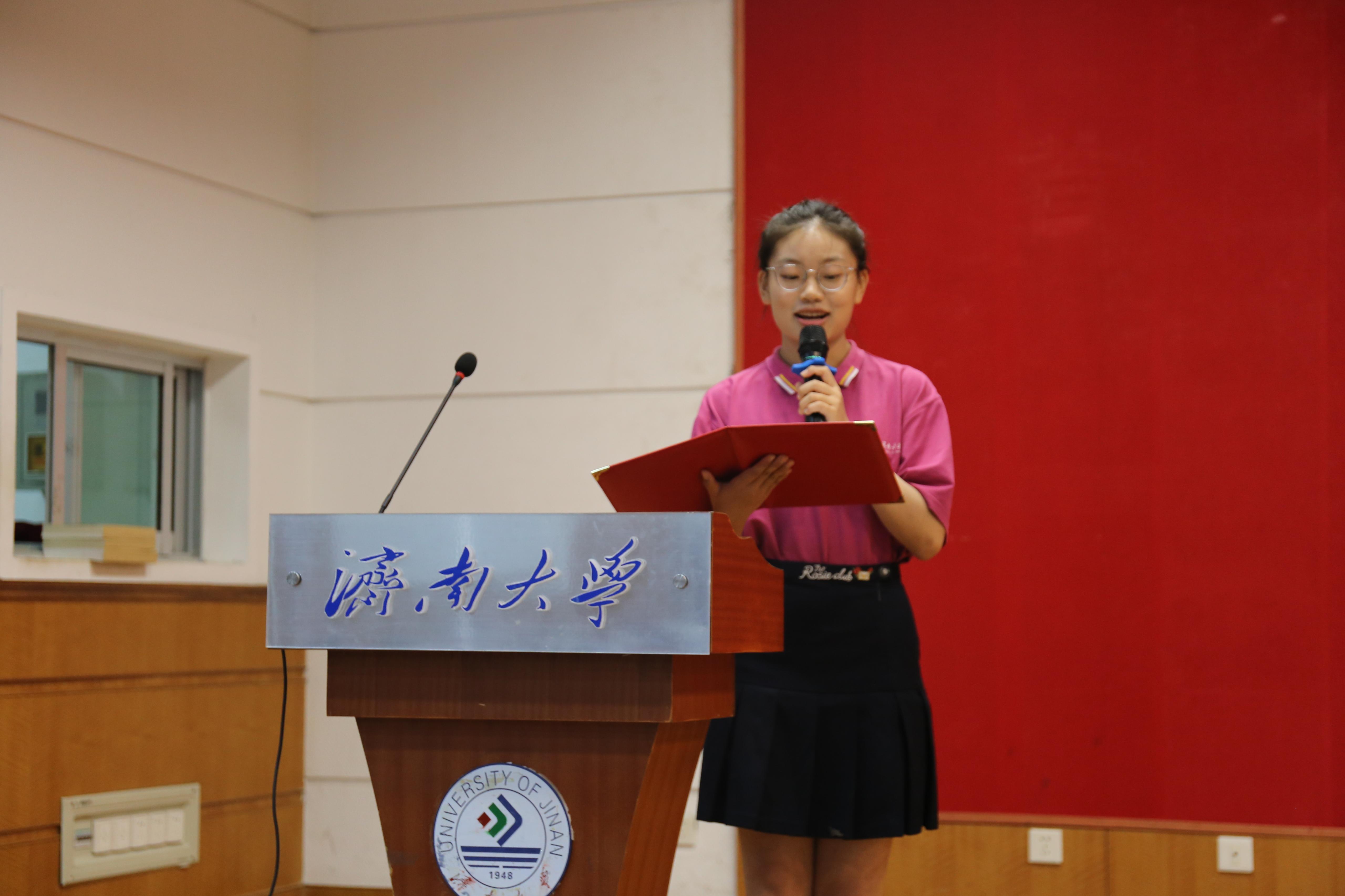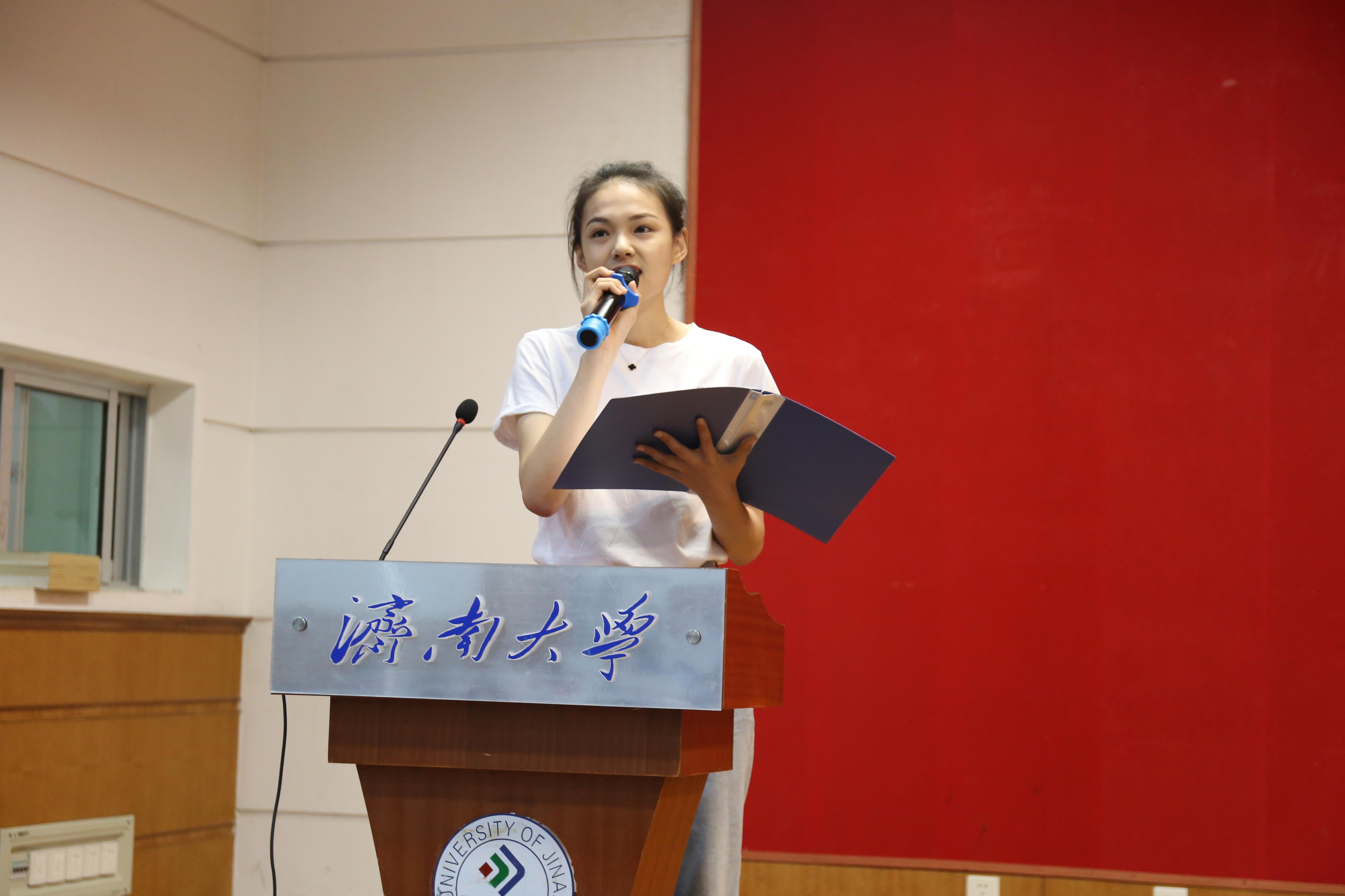 研究生新生代表、社会学研究生李洁璐代表全体研究生发言,讲述了来到济南大学后内心的喜悦与对于济南大学的向往与憧憬,并就未来研究生三年中的规划进行详细叙述。