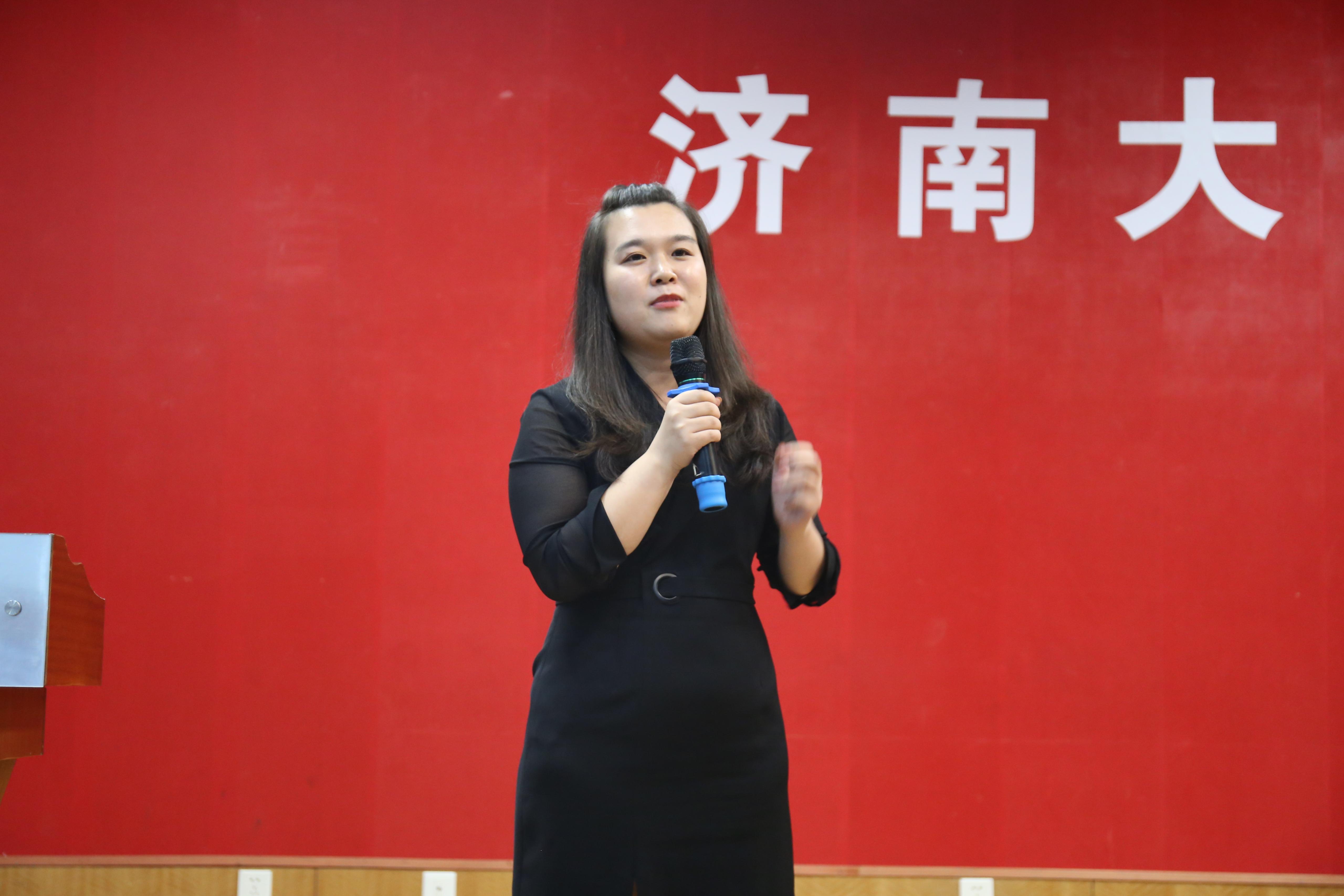 优秀校友代表,2009届优秀毕业生郭玉婷分享了她的成功经验,并表达了对于母校济大的怀念与对于济大未来发展方向的期待。