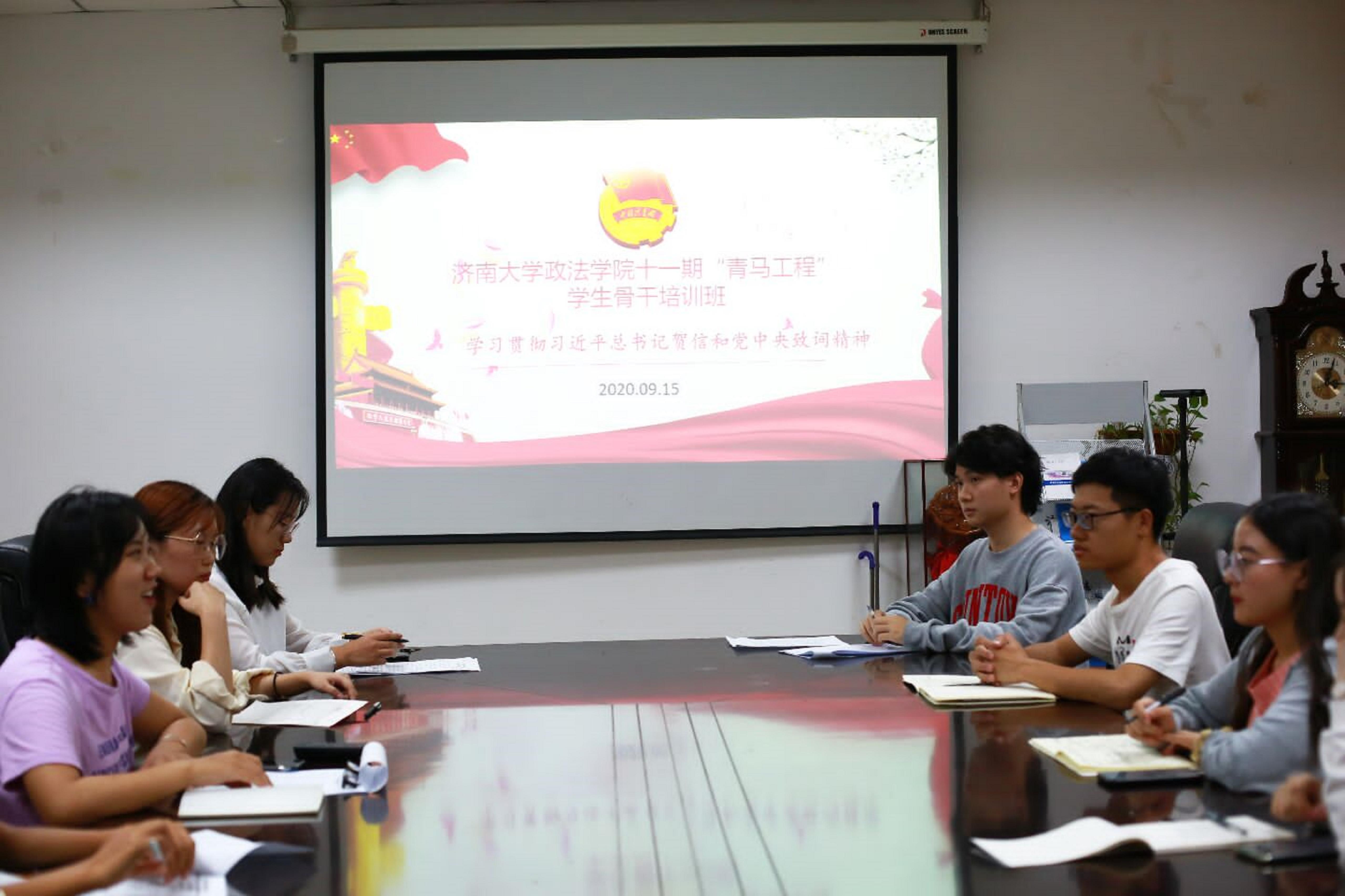 9月15日,必赢电子游戏网站第十一期“青年马克思主义者培养工程”学生骨干培训班(以下简称青马班)采取“小组主题学习+学员代表座谈会集中讨论”的形式组织学习贯彻习近平总书记贺信和党中央致词精神,会议由青马班班长何福龙,团支书王淑杰主持。