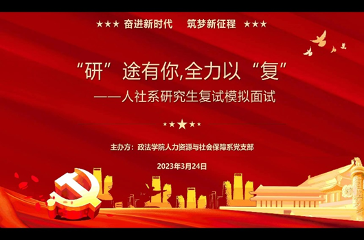 为帮助我系2019级考研学生积极应对考研复试,提升同学们的复试面试能力并助力同学们成功上岸,我院人力资源与社会保障系党支部组织举办了2023年研究生复试模拟面试活动。本次活动分别于3月24日晚上及3月27日下午线上和线下进行。此次活动由任晓敏老师主持,杨风、张银、张世青、陈玉成、辛瑞萍五位老师担任模拟面试考官,我系2019级考研初试过线的同学及二战的本专业学生参加了此次活动。