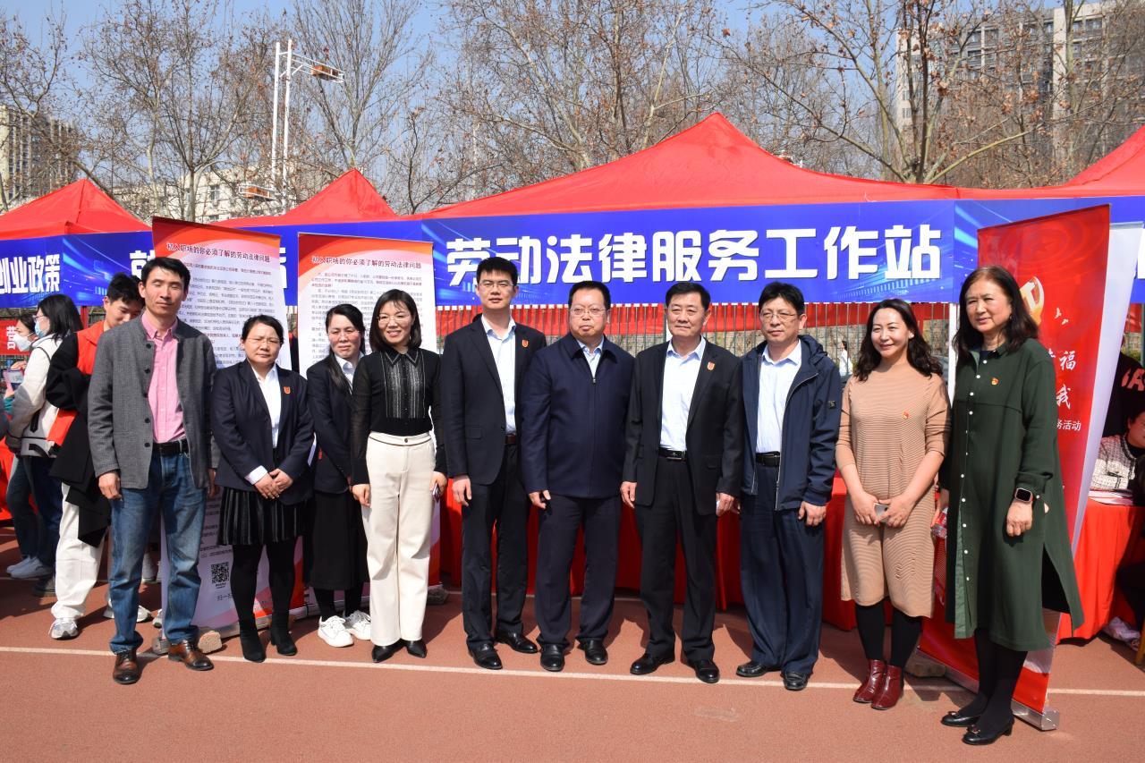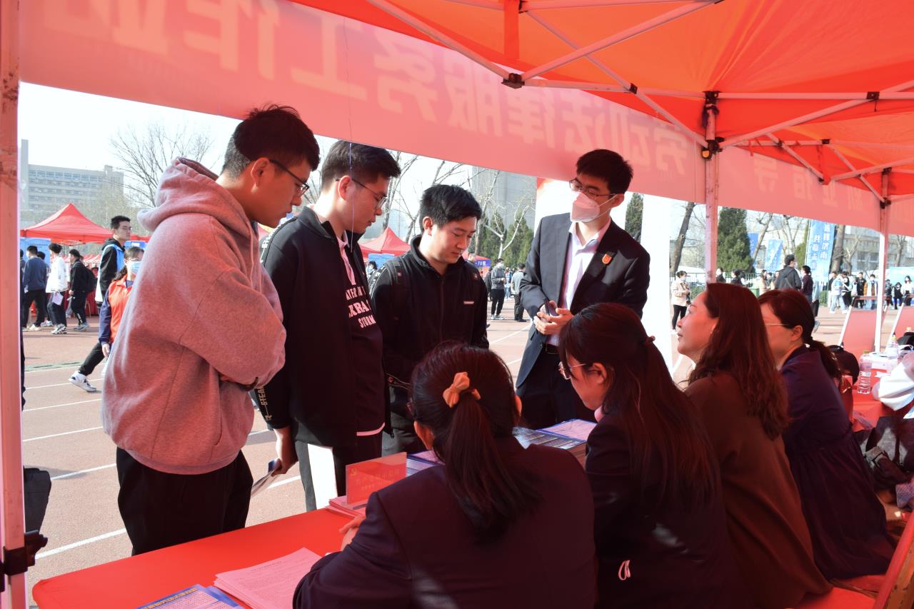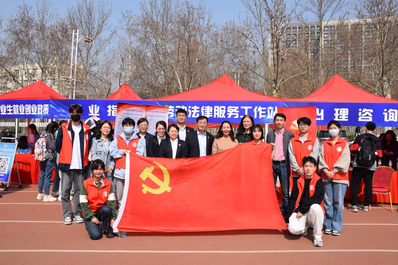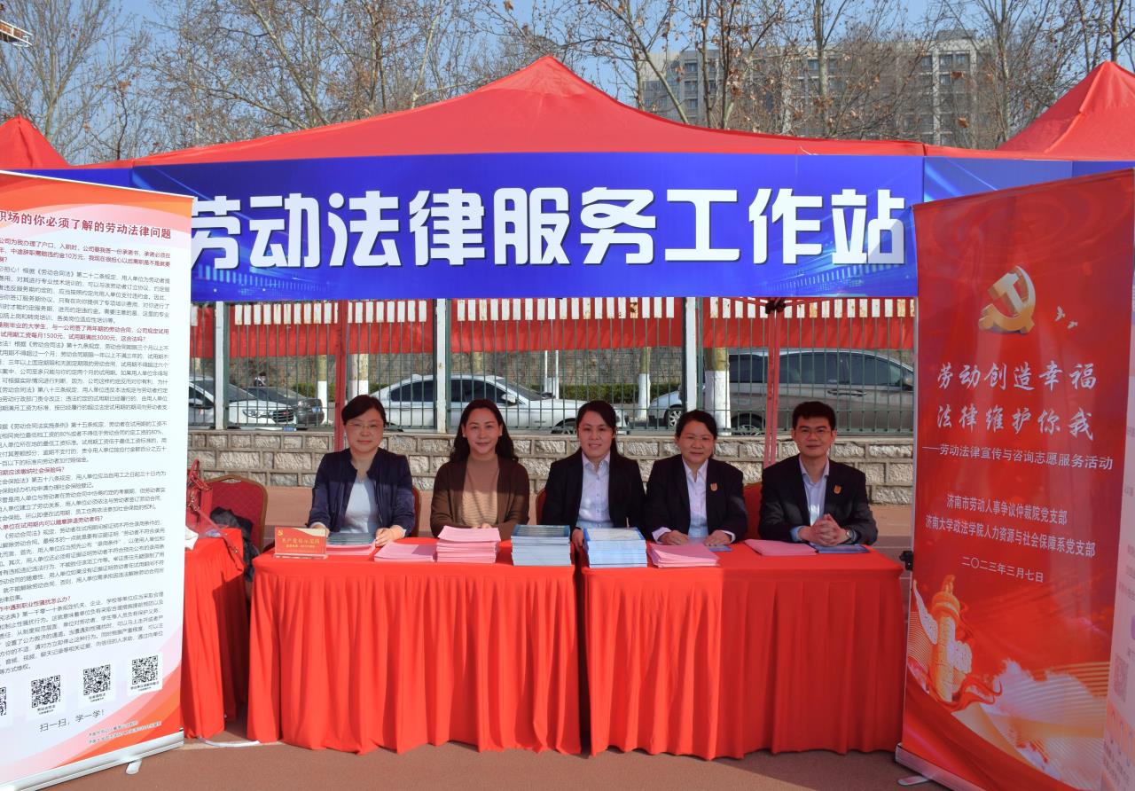 为加强大学生的劳动法律意识,维护高校毕业生的劳动就业权益,构建和发展和谐稳定的劳动关系,3月7日,人力资源与社会保障系(以下简称“人社系”)党支部与共建党支部——济南市劳动人事争议仲裁院党支部在“选择济南·共赢未来”2023年驻济高校毕业生就业双选会现场联合开展了劳动法律宣传与咨询志愿服务活动。济南市劳动人事争议仲裁院副院长张允明带队参加本次志愿服务活动,必赢电子游戏网站正处级组织员国迎春、副书记李涛、副院长朱丽敏和人社系部分师生参加此次活动。刘宗明校长作为联系人社系党支部的校领导莅临现场指导工作。