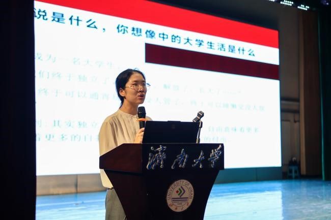 2023级辅导员房仕琪老师带领新生学习了《济南大学本科生学生制度手册》,并从学习、考勤、违纪、考核等角度展开重点讲解。此外,房仕琪老师向新生强调,考上大学不是终极目标,要保持良好的学习态度,笃行不怠,继续在大学四年创造瞩目成绩,交上人生满意答卷。