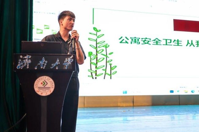 预科2301班辅导员艾尼瓦尔·亚森老师以“公寓安全卫生 从我做起”为主题,从学校公寓管理相关规定、公寓安全管理奖励与处罚、学生公寓安全卫生检查评分标准等方面展开讲解,并以优秀宿舍典型激励新生努力创建安全舒适、整洁美观、文明健康的生活园地。