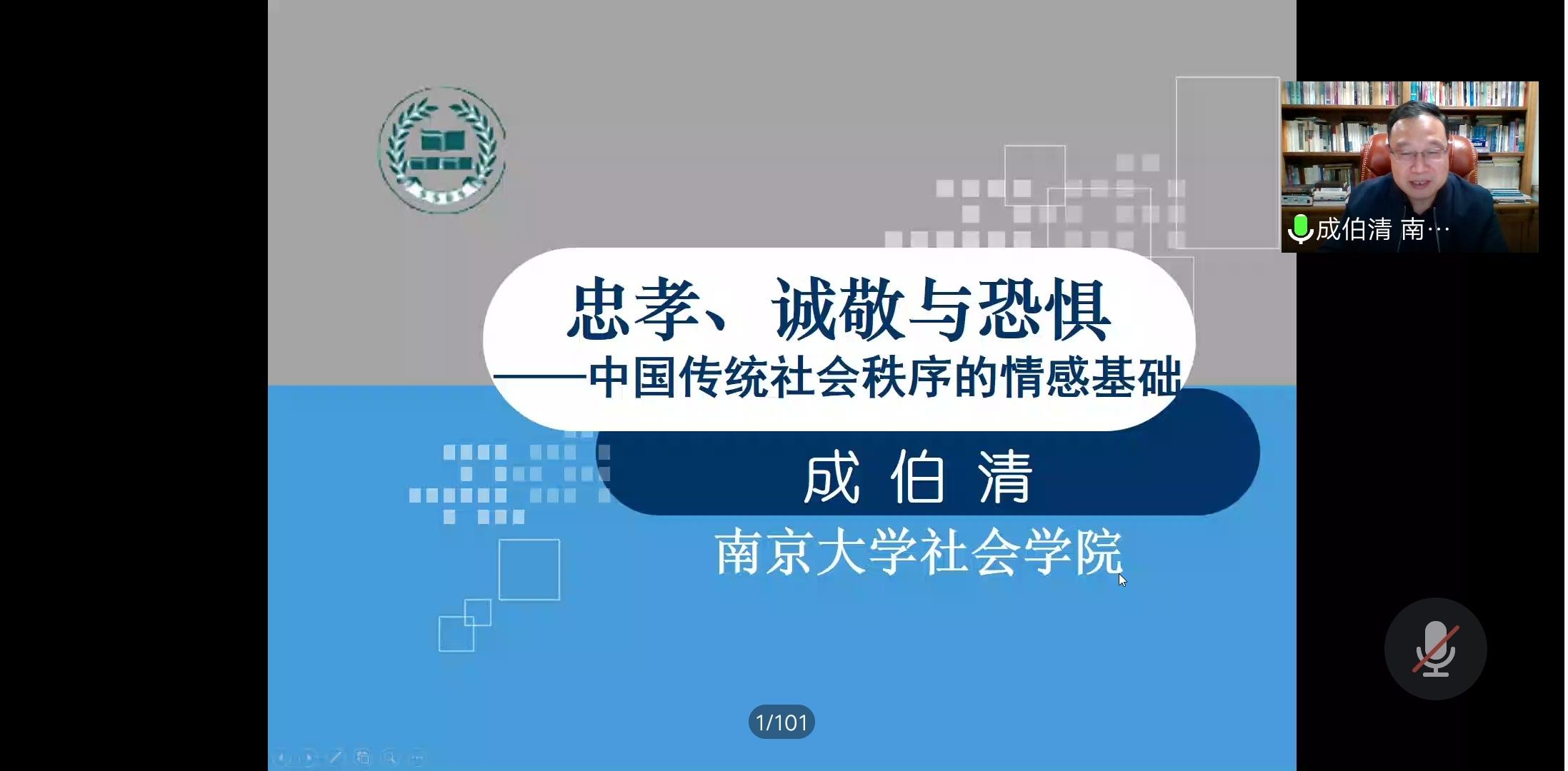 7月28日,我院2020暑期系列云讲座第三期在腾讯会议顺利举行,活动邀请南京大学社会学院院长成伯清教授做题为《忠孝、诚敬与恐惧:中国传统社会秩序的情感基础》专题讲座。讲座由院长梁丽霞主持,学院师生及相关学者300余人在线参加。