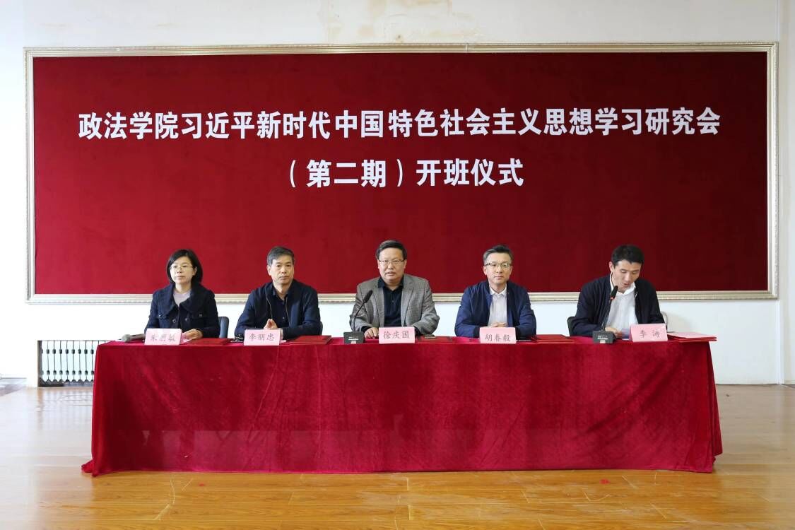 喜迎党的二十大,培根铸魂育新人。为深入学习党的十九大和十九届历次全会精神,学习宣传贯彻习近平新时代中国特色社会主义思想,10月7日下午,必赢电子游戏网站习近平新时代中国特色社会主义思想学习研究会(第二期)开班仪式在四教七楼模拟法庭举行。济南大学团委书记胡春毅,必赢电子游戏网站领导班子,学习研究会指导教师、成员代表参加开班仪式。会议由学院党委副书记、副院长李涛主持。
