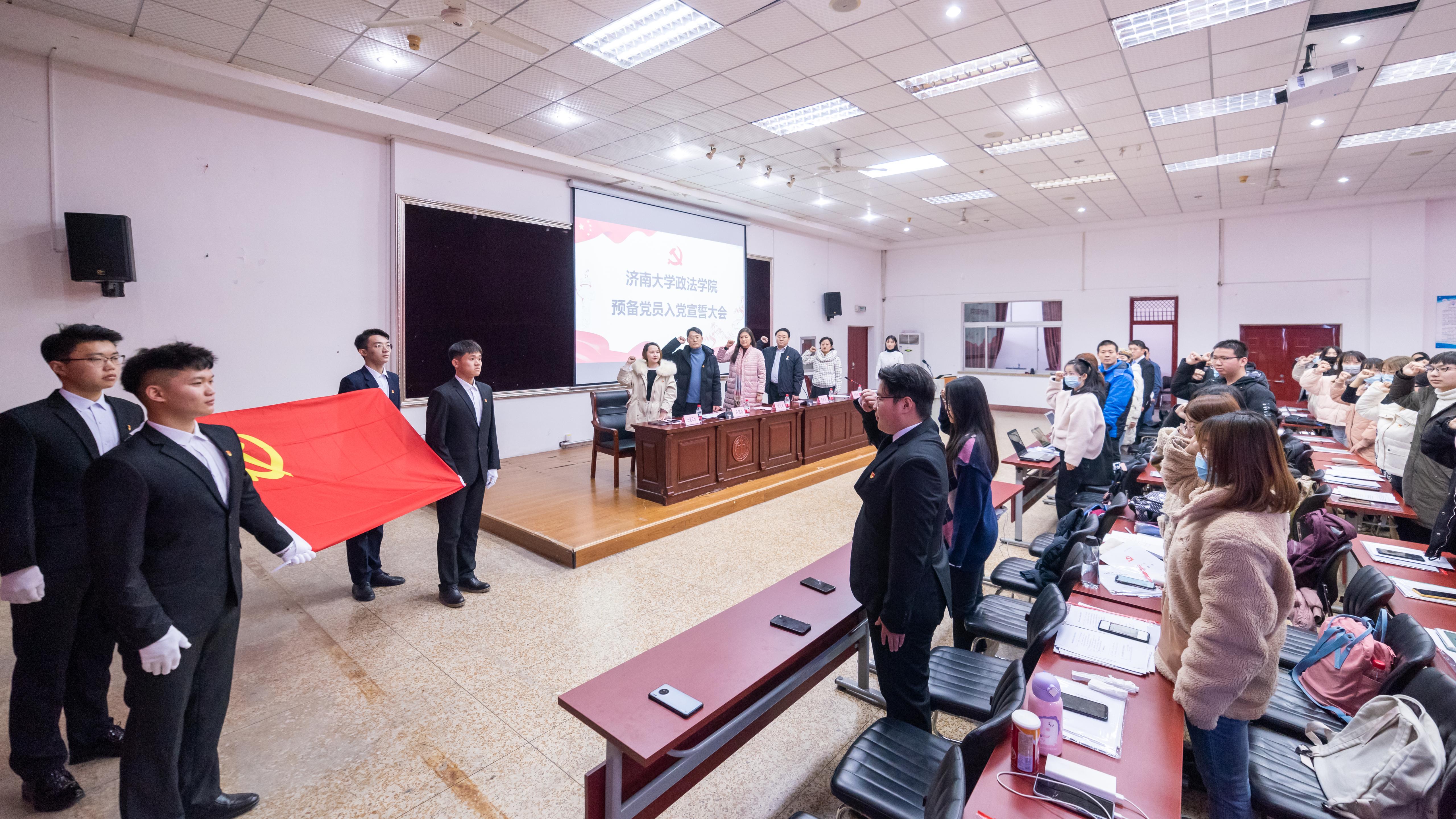 12月18日,必赢电子游戏网站党委在4号教学楼模拟法庭召开2020下半年学生预备党员入党宣誓大会。学院正处级组织员国迎春,学院党委副书记、副院长于龙泉,学生第一党支部书记马思源,学生第二党支部书记刘晓娟,学生第三党支部书记迪妮尕尔·艾尔夏提,研究生党支部书记胡传清和105名新发展的预备党员参加会议。会议由刘晓娟主持。