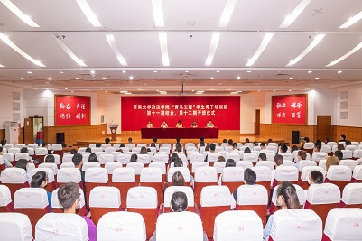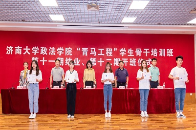 我院党委副书记、副院长于龙泉宣读《关于准予第十一期“青年马克思主义者培养工程”学生骨干培训班学员结业的决定》,96名学员认真完成培训任务,顺利结业。与会领导老师为第十一期青马班25名优秀学员颁发证书。第十一期青马班学员代表齐志良回顾了自己在青马班一年来的收获,从理论学习、社会实践、科技创新、志愿服务四个方面分享成长经历。第十二期青马班新学员代表杨舒雯表达了自己加入青马班的热切愿望,表示将珍惜学习机会,认真参加培训,努力做到对创新理论的学思用贯通、知信行统一。