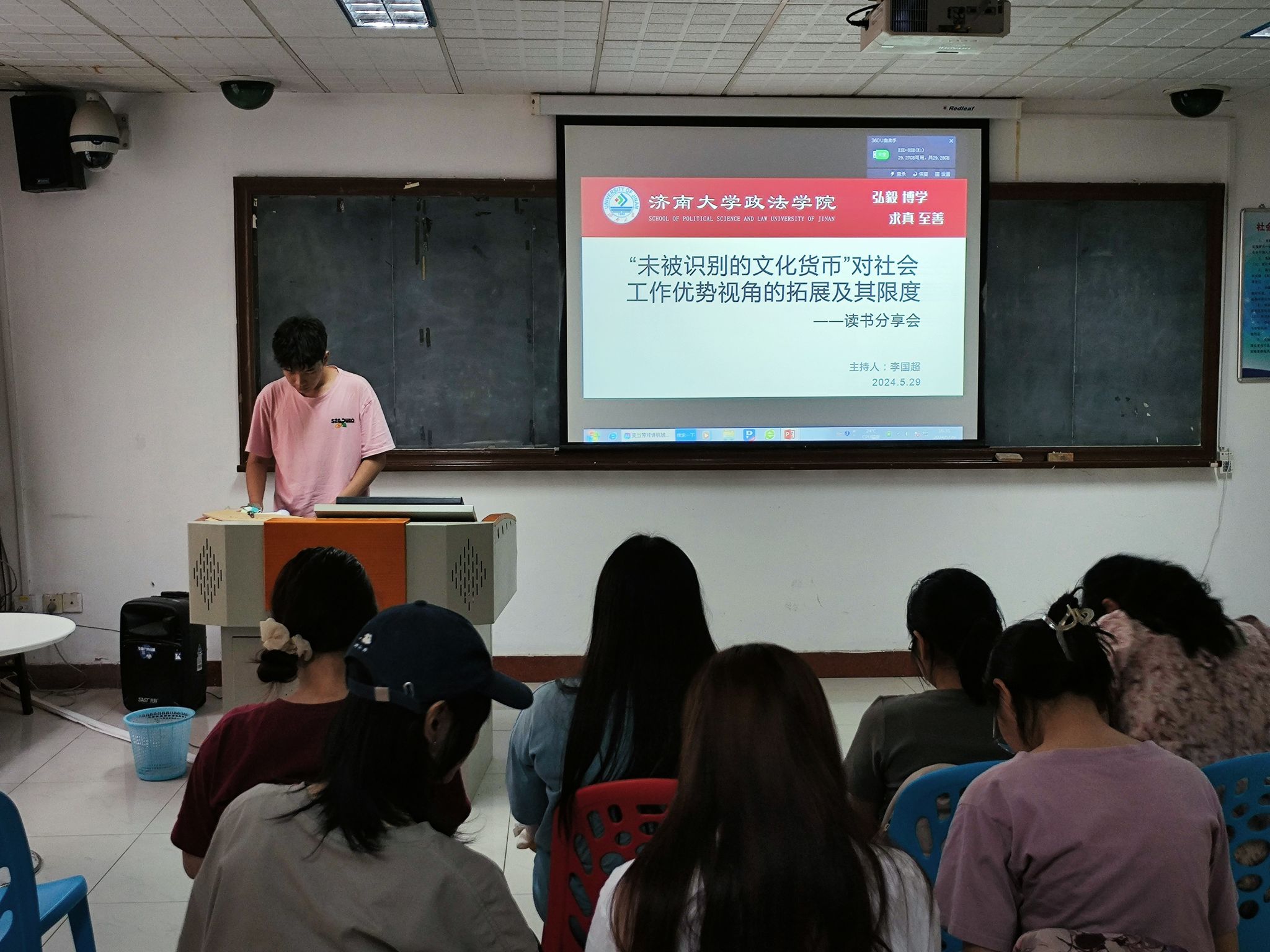 为了进一步营造良好的学习氛围,我院社会学系于5月30日,在四教社工实验室成功举办第五期卓越读书促进会。本次阅读的文献是刊登在《社会工作与管理》第三期由孙旭友、任晓迪所撰写的《“未被识别的文化货币”对社会工作优势视角的拓展及其限度》一文。