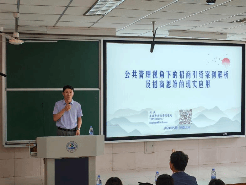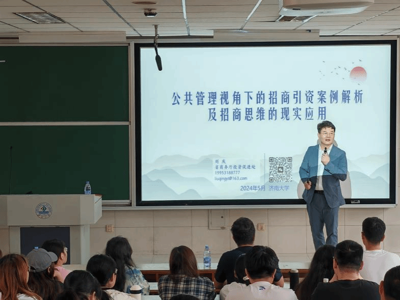 随后,刘庆副处长就公共管理视角下的招商引资展开深入讲述。首先,他强调了培养招商队伍的重要性,表示招商引资的成败往往取决于背后的思维模式,而这种思维模式又源于思想观念。刘副处长详细阐述了渔夫思维、多赢思维以及长线思维等六种招商引资思维,尤其强调了长线思维中赢得信任是最为宝贵的财富,政府服务、干部形象和政府信誉是政府招商引资最好的招牌。之后,刘副处长深入剖析了思维的底层逻辑,为大家揭示了其内在的含义和原理。招商引资工作背后是政企合作、项目管理、客户管理等一系列公共管理流程。学会招商引资,可以解析诸多现象发生的脉络、诸多矛盾产生的缘由和诸多事情的结局。在与谈环节,同学们积极发言提问,刘副处长结合自身的经历和工作经验对同学们提出的问题进行了耐心细致的解答。最后,刘副处长对在座同学提出了更高的要求和希望,鼓励同学们通过学习与实践提升自身能力,更好地适应未来社会发展的要求。