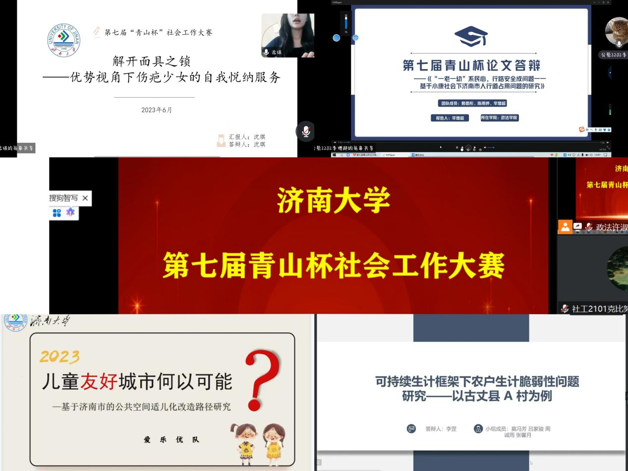 本次大赛在“一支部一品牌、一专业一赛事”的育人理念指导下进行赛事宣传和作品评比。济南大学“青山杯”大赛在校教务处、学工处和校团委的指导下已连续成功举办七届,得到了济南大学教育发展基金会、“青山”社会工作基金理事会的关心和大力支持。一年一度的青山杯社会工作大赛为国家一流专业人才培养提供动力支持,也是一流专业建设的重要体现。同时,在促进人才培养、教学创新和社会学学科发展、多学科交融等方面提供了良好的平台和学习机会。