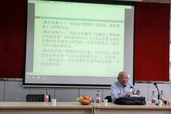 朱力宇教授主要围绕以下几个方面内容进行了详细阐述和深入剖析:公约与建议委员会的成立过程和性质,公约与建议委员会的职权和审议程序,公约与建议委员会行使职权的若干具体做法,公约与建议委员会在实际运行中存在的问题,中国在教科文组织的影响及话语权。朱教授特别指出,公约与建议委员会存在两个“不平衡”和一个“高低”的问题,并结合实例深入浅出地分析了审议中可能面临的难题,以加深在座师生对联合国教科文组织人权法律制度的理解。讲座最后,朱教授鼓励同学们“读万卷书,行万里路”,做知行合一的涉外法治人才。