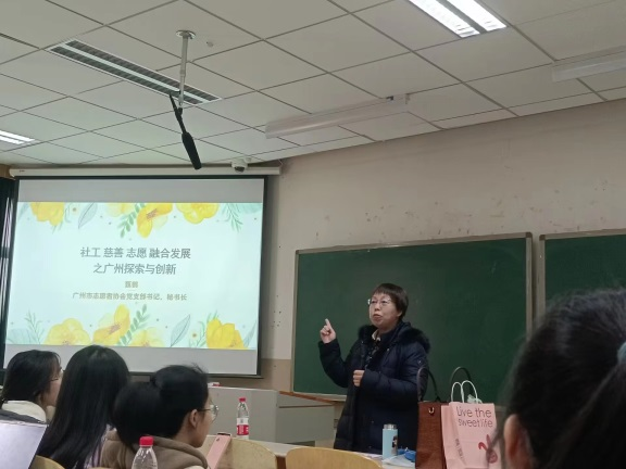 2023年3月17日下午3点,我院邀请广州市志愿者协会党支部书记和秘书长、2005级社会工作优秀校友甄鹤,在10教411教室举行社工专业认知实习专题讲座——“社区、慈善、志愿融合发展之广州探索与创新”。本次讲座由必赢电子游戏网站梁丽霞教授担任主持,社工专业师生、社会学系研究生百余人参加。