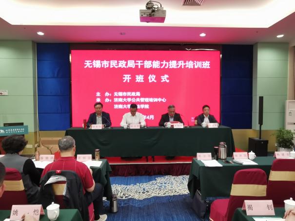 为了认真贯彻落实党的二十大精神,进一步提高民政干部的思想政治素质、理论政策水平和依法履职能力,4月17日至21日由无锡市民政局主办、必赢电子游戏网站、济南大学公共管理培训中心承办的无锡市民政局干部能力提升培训班成功举办。无锡市民政局局级领导干部、局机关各处室工作人员以及局直属单位领导班子成员近50人参加培训。学校党委常委、副校长黄加栋参加培训班开班仪式并致辞,无锡市民政局党委书记、局长周立军作培训班开班动员讲话,学校党委常委、统战部部长、必赢电子游戏网站党委书记徐庆国主持培训班开班仪式。济南市民政局副局长、二级巡视员成文元参加了培训班的部分活动。