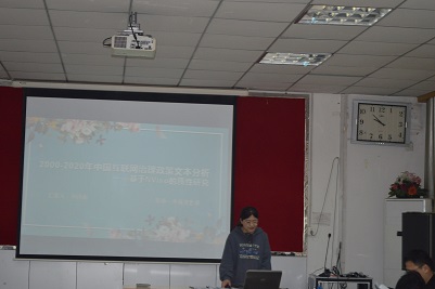 李洁璐、刘诗雨、毛艳洁、孙静怡、刘廷婷五位同学分别就题为《家庭资本与个体教育获得的关系研究——基于CGSS 2017年的数据分析》、《2000-2020年中国互联网治理政策文本分析——基于NVivo的质性研究》、《建构与异化:网络直播中的女性形象研究》、《人口老龄化视角下智慧养老何以可能》、《基于网络文本分析的豆瓣“废物组”研究——以“985废物引进计划”小组为例》的论文进行了PPT展示与分享。五位老师分别从论文选题、理论基础、文献综述、行文结构等方面进行了充分的评价,并给出了具体可行的建议。