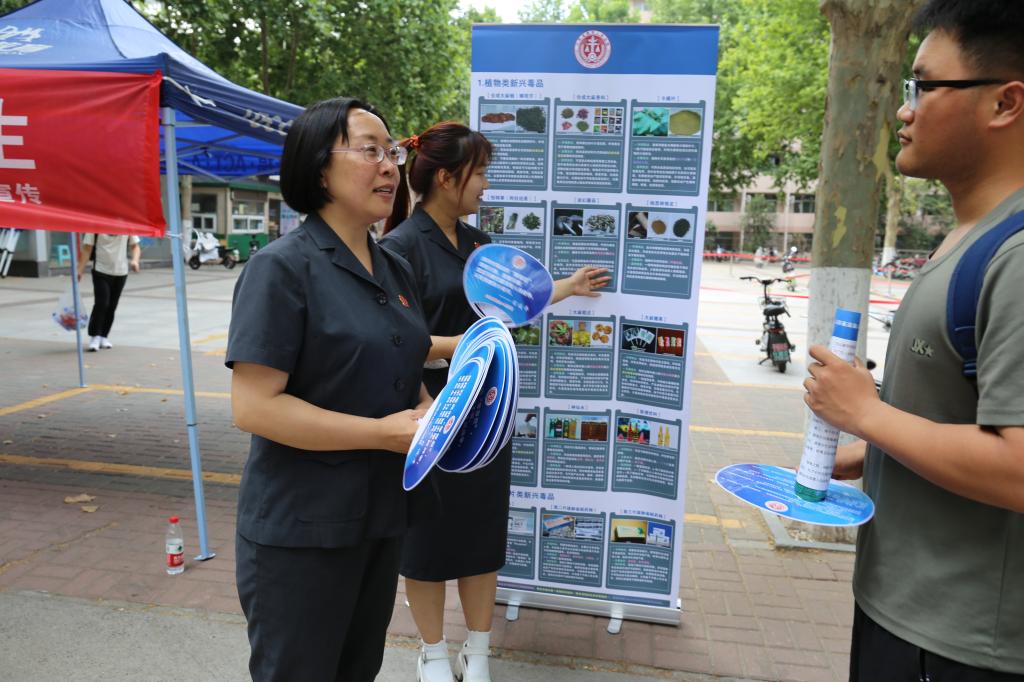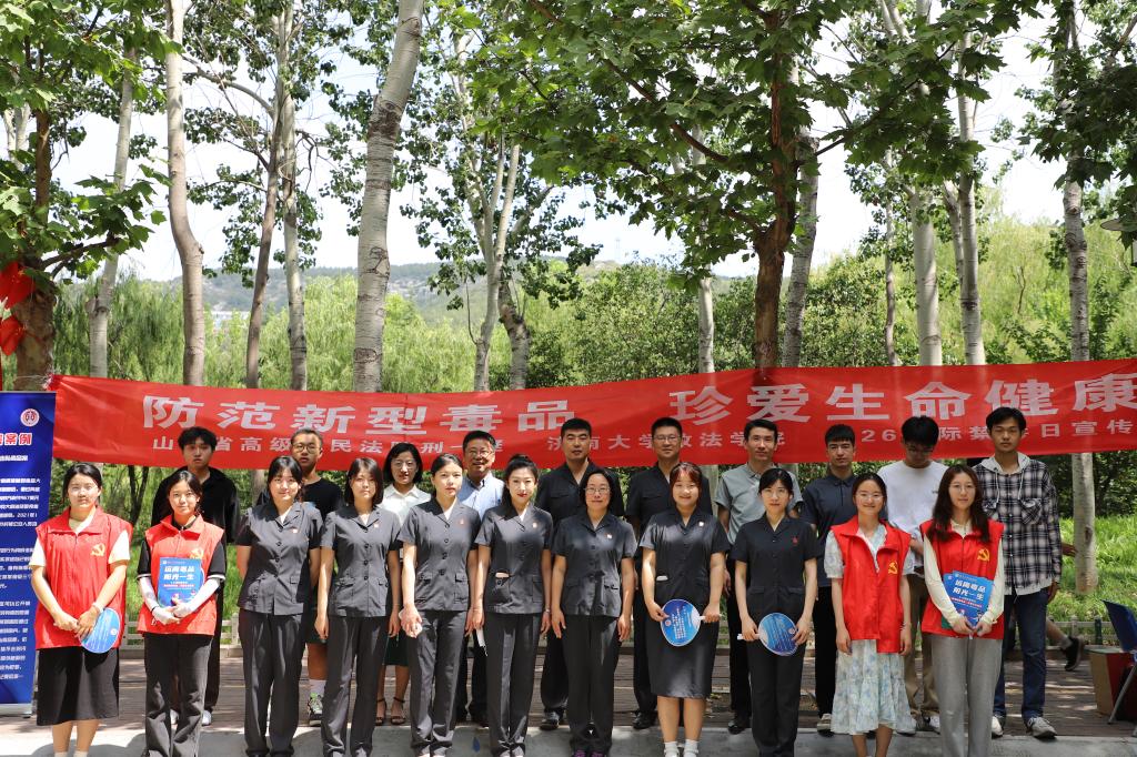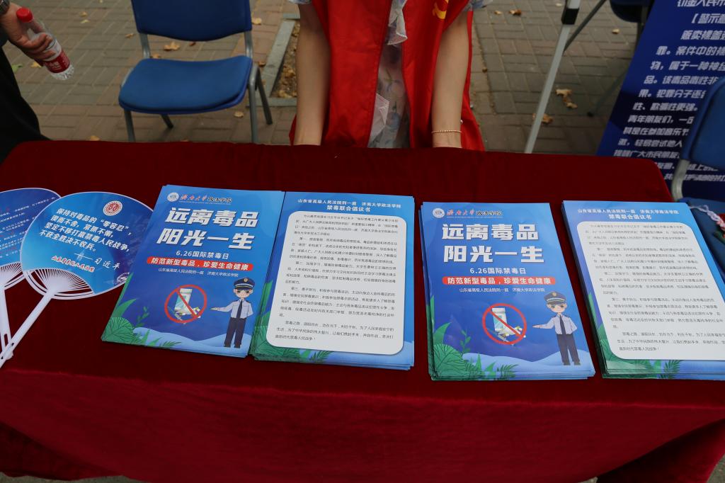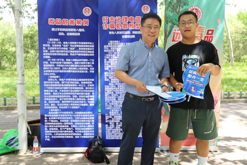2023年6月26日是第36个国际禁毒日。为深入学习贯彻习近平法治思想,进一步加强禁毒宣传教育,增强广大师生禁毒意识和法治观念,6月26日上午,山东省高级人民法院刑一庭与必赢电子游戏网站在八食堂广场联合开展“6·26”国际禁毒日宣传教育活动。