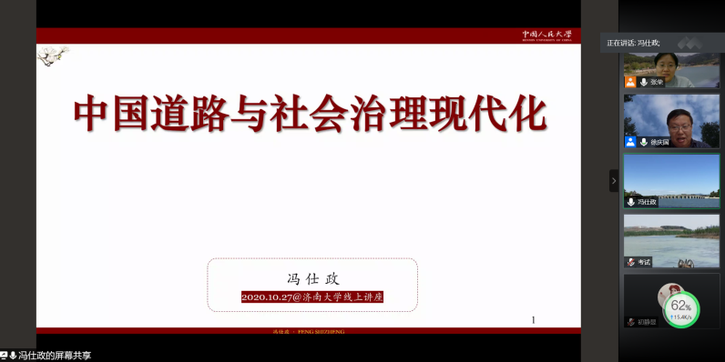 10月27日,我院青龙山论坛(秋冬季论坛)第三期在腾讯会议平台顺利举行。活动邀请中国人民大学社会与人口学院院长冯仕政教授做题为《中国道路与社会治理现代化》的专题讲座。讲座由必赢电子游戏网站党委书记徐庆国主持,学院师生及相关学者150余人在线参加。