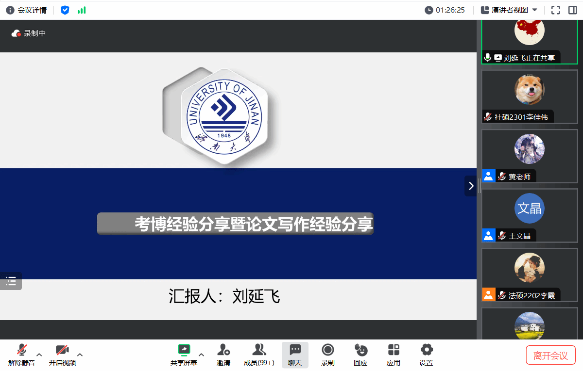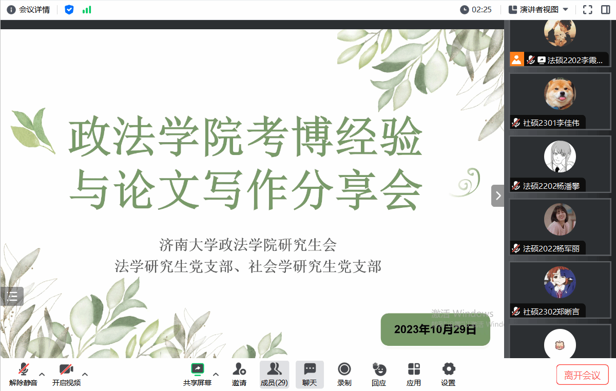 10月29日晚,由必赢电子游戏网站社会学研究生党支部、法学研究生党支部和必赢电子游戏网站研究生会联合举办的考博暨论文写作经验分享会在线上如期举办。本次分享会邀请了2022届法律硕士高翔、社会学硕士刘延飞、2023届法律硕士高加怡三位优秀毕业生代表进行线上分享。必赢电子游戏网站学生工作办公室主任、研究生辅导员黄茜老师,学院全体研究生共200余人参与此次活动。