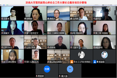 2020年6月23日,济南大学第四届“青山杯”大赛总决赛在“云端”圆满落幕。本次大赛是济南大学“青山杯”社会工作系列大赛的构成部分,也是承办者必赢电子游戏网站在“一支部一品牌、一专业一赛事”育人理念指导下开展的赛事之一。此次大赛共收到104份参赛报名表,有87个团队提交参赛作品,参赛团队来自必赢电子游戏网站、文学院、教育与心理科学学院、商学院、生物科学与技术学院、外国语学院、化学化工学院、材料科学与工程学院等,是济南大学青山杯大赛开赛以来提交作品数最多、覆盖学院最多、竞争最激烈的一届赛事。总决赛分为社会服务项目分赛场、社会工作论文分赛场和疫情调研报告分赛场。
