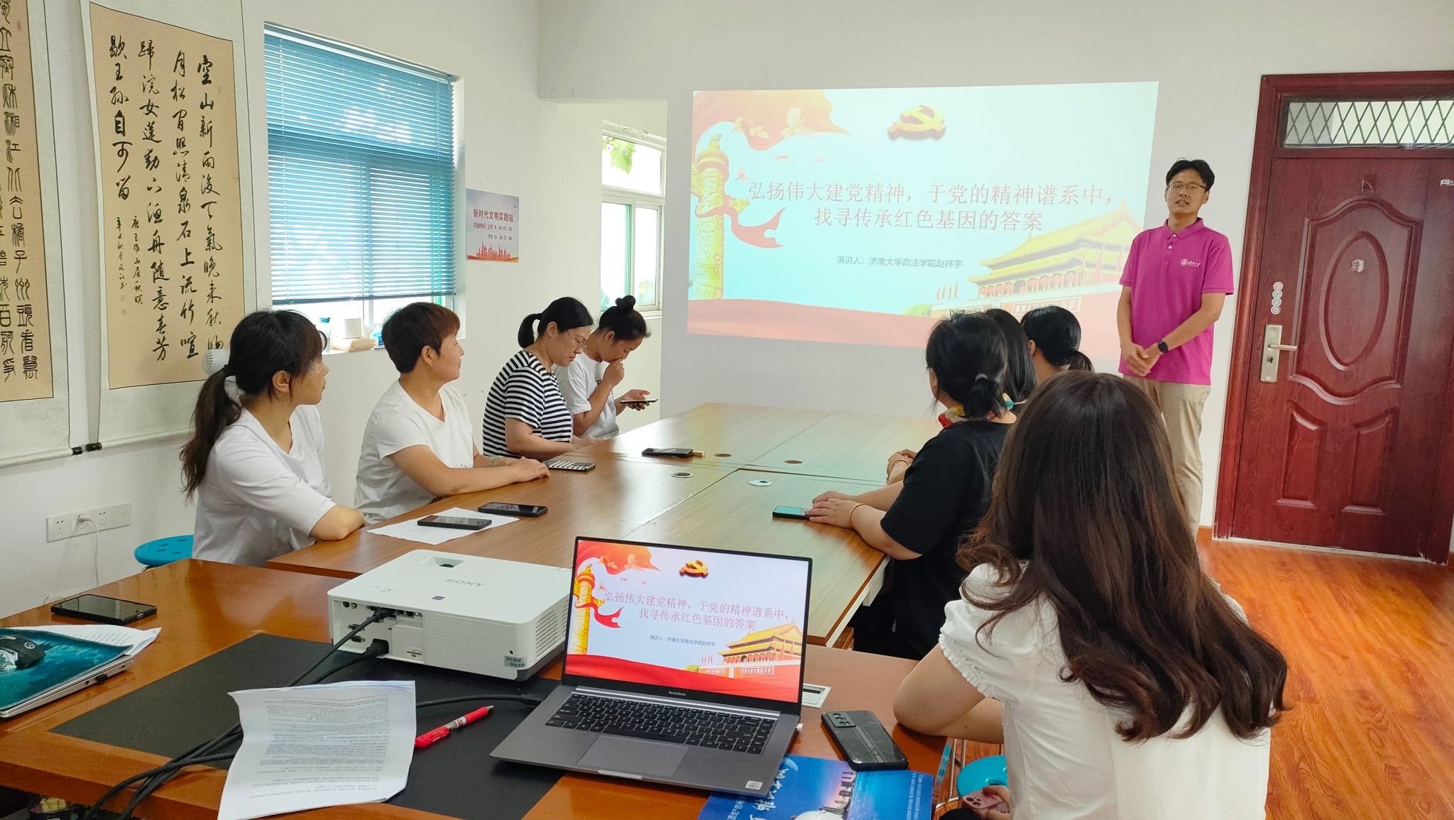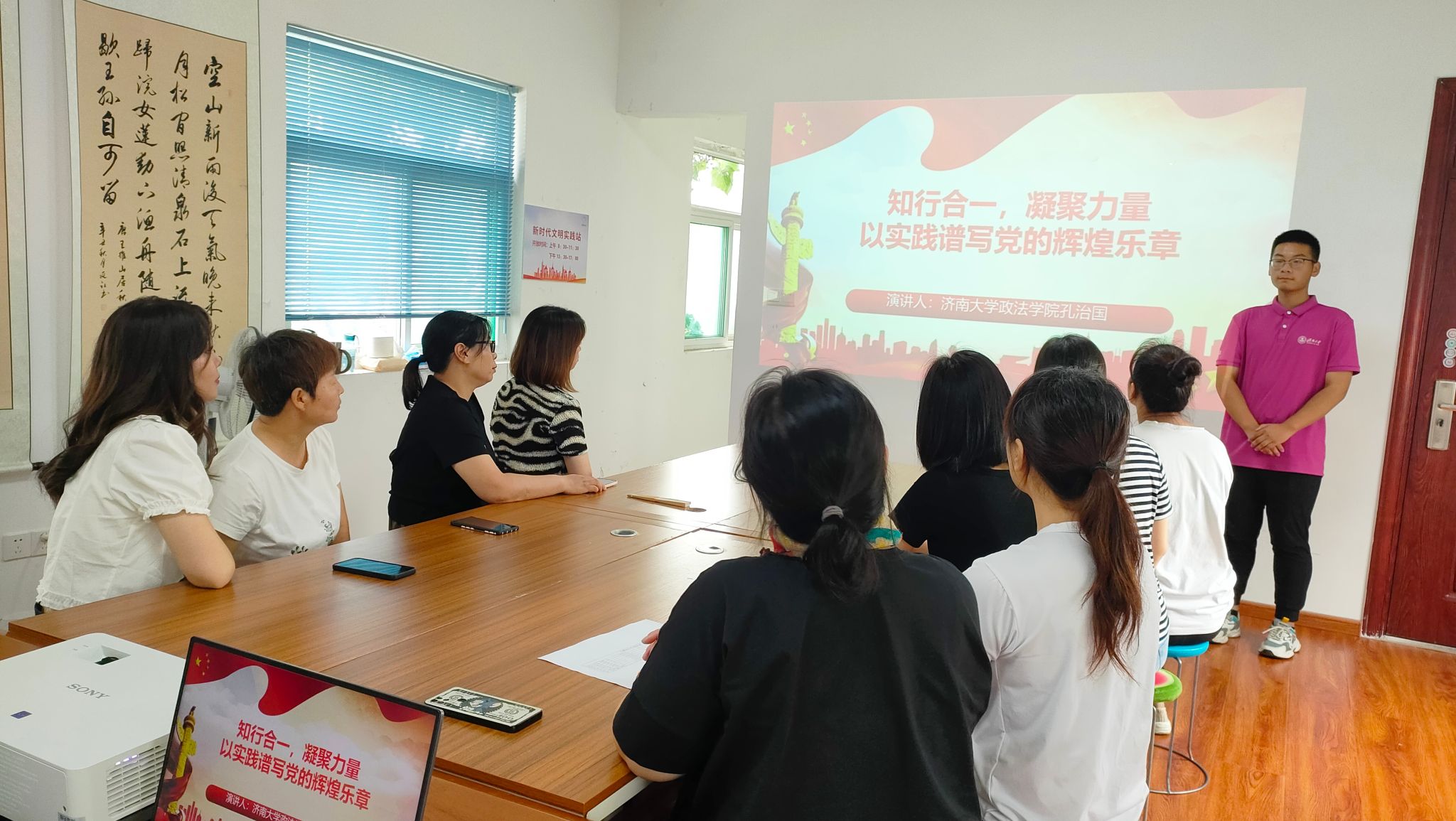 为深入学习宣传贯彻党的二十大精神,引导和帮助学生上好与现实相结合的“大思政课”,在社会课堂中“受教育、长才干、作贡献”,7月25日,必赢电子游戏网站联合济南市市中区汇贤社区党支部开展主题教育党课宣讲活动,由必赢电子游戏网站“弘政情法意,话青春未来”暑期理论宣讲团的学生宣讲员进行党课宣讲。