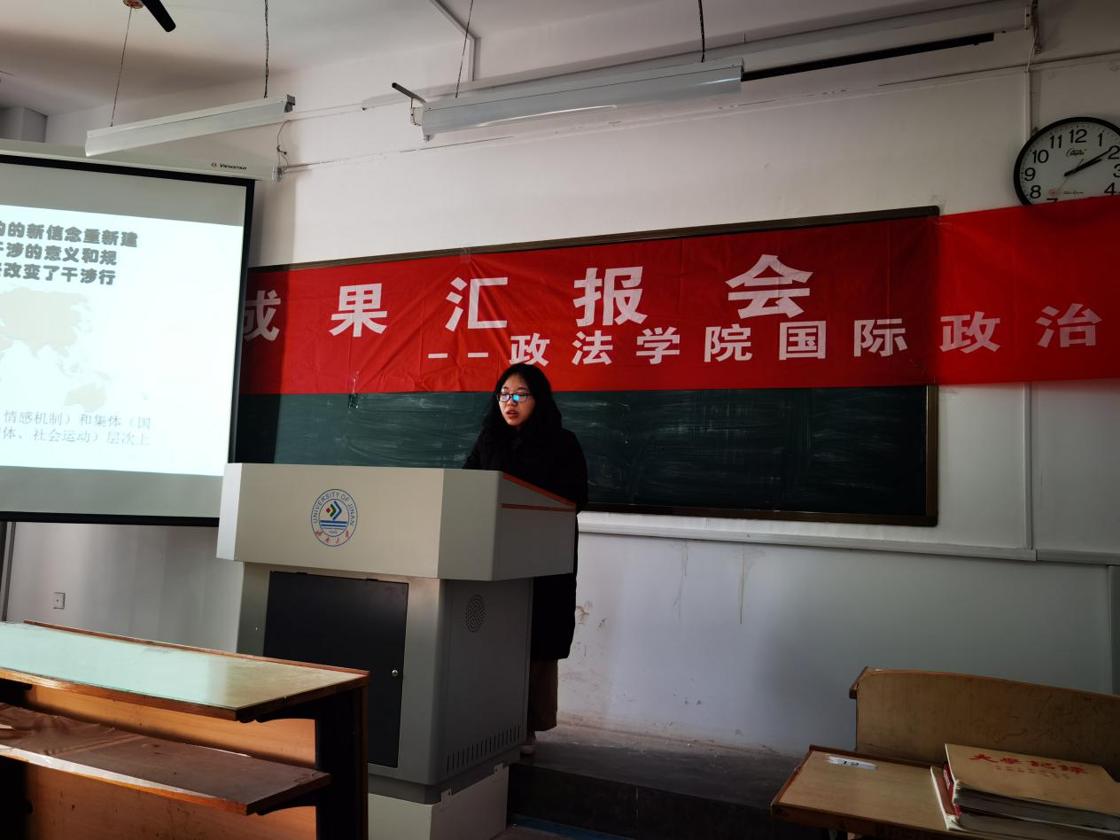 12月24日下午,我院2018级国际政治专业举办了本学期的学研成果汇报会。本次成果汇报会邀请必赢电子游戏网站副院长李慧明老师以及国际政治系专业李洪涛老师、刘凤环老师和孙云飞老师及国政1801班全体同学共同参加。