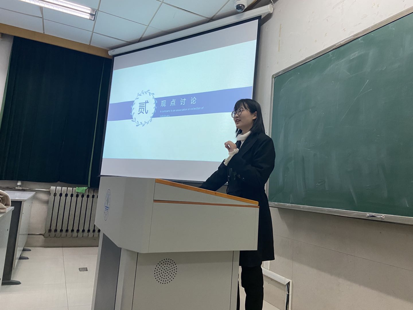第一位上台的王文静同学,向大家推荐了E·博登海默的《法理学——法哲学及其方法》一书。她按照本书的内在逻辑结构,从历史概论、法律的本质和作用以及法律的渊源和技术三个角度详细剖析,让同学们在复习了法理学知识的同时更加全面地了解本书。第二位分享法治知识的刘柏君同学,对“十秒ko两人是否构成正当防卫”这一热点问题进行了详细的案例分析。她将本次事件分为两个阶段,并对两个阶段行为的主客观原因以及防卫限度等条件进行了详细的阐述,并抛出前一阶段属于正当防卫而后一阶段属于防卫不适时的观点,同时以于欢故意伤害案、昆山反杀案做为本案例的对比,为同学们提供了一个新颖独特的案例分析角度。第三位分享法治知识的许莹莹同学,也就此案例进行了剖析,并抛出了另一种观点。她将正当防卫的构成要件逐一列举,认为相某的行为未满足其中某些要件,所以其ko行为不构成正当防卫。许莹莹同学以幽默的讲述方式,不仅带同学们复习了上学期的刑法知识,也为大家提供了又一观察角度。第四位张璇同学认为此案例中相某的行为构成正当防卫。她适当地融情于法,将正当防卫以及防卫过当行为进行了详细解释,阐明了自己的观点。