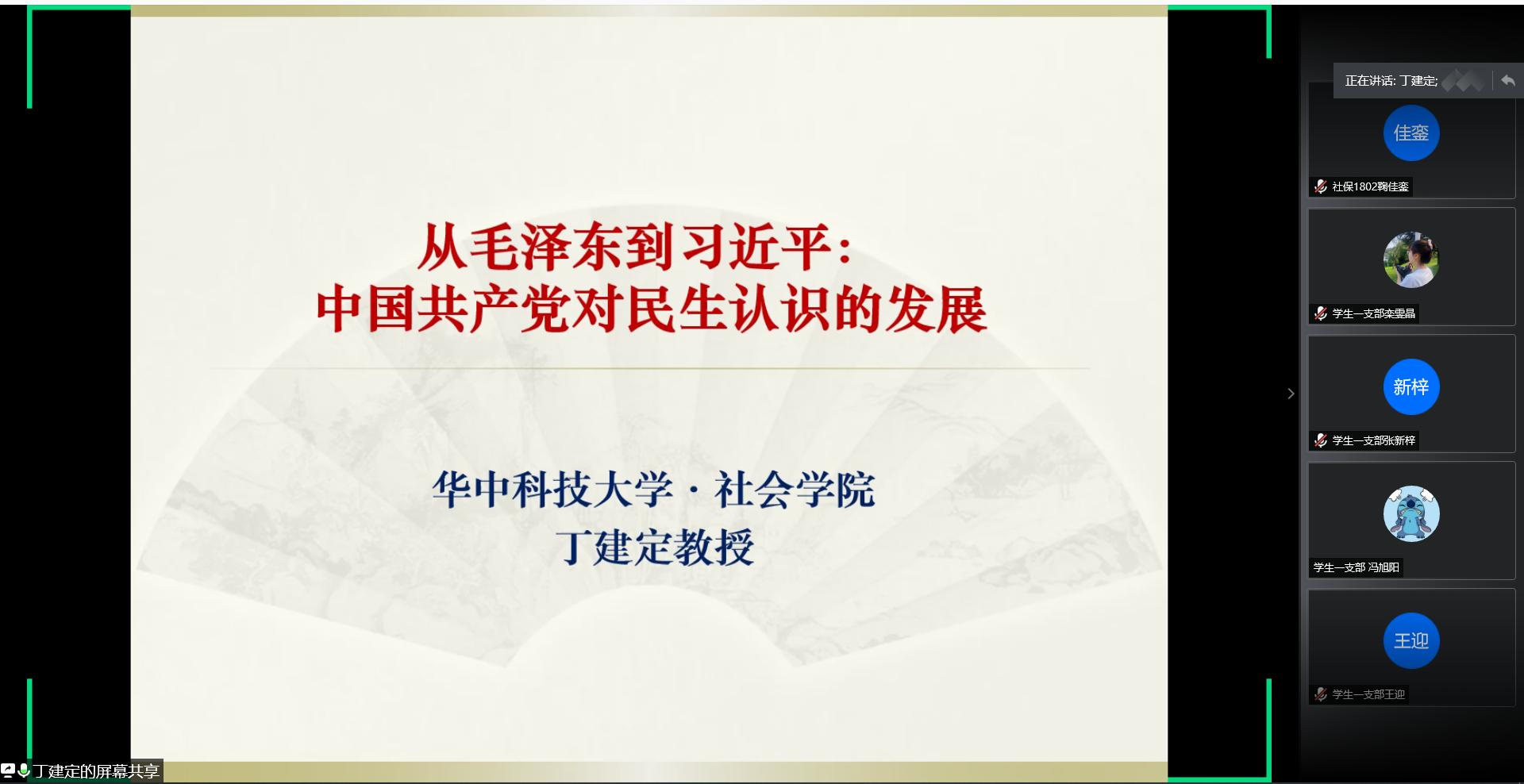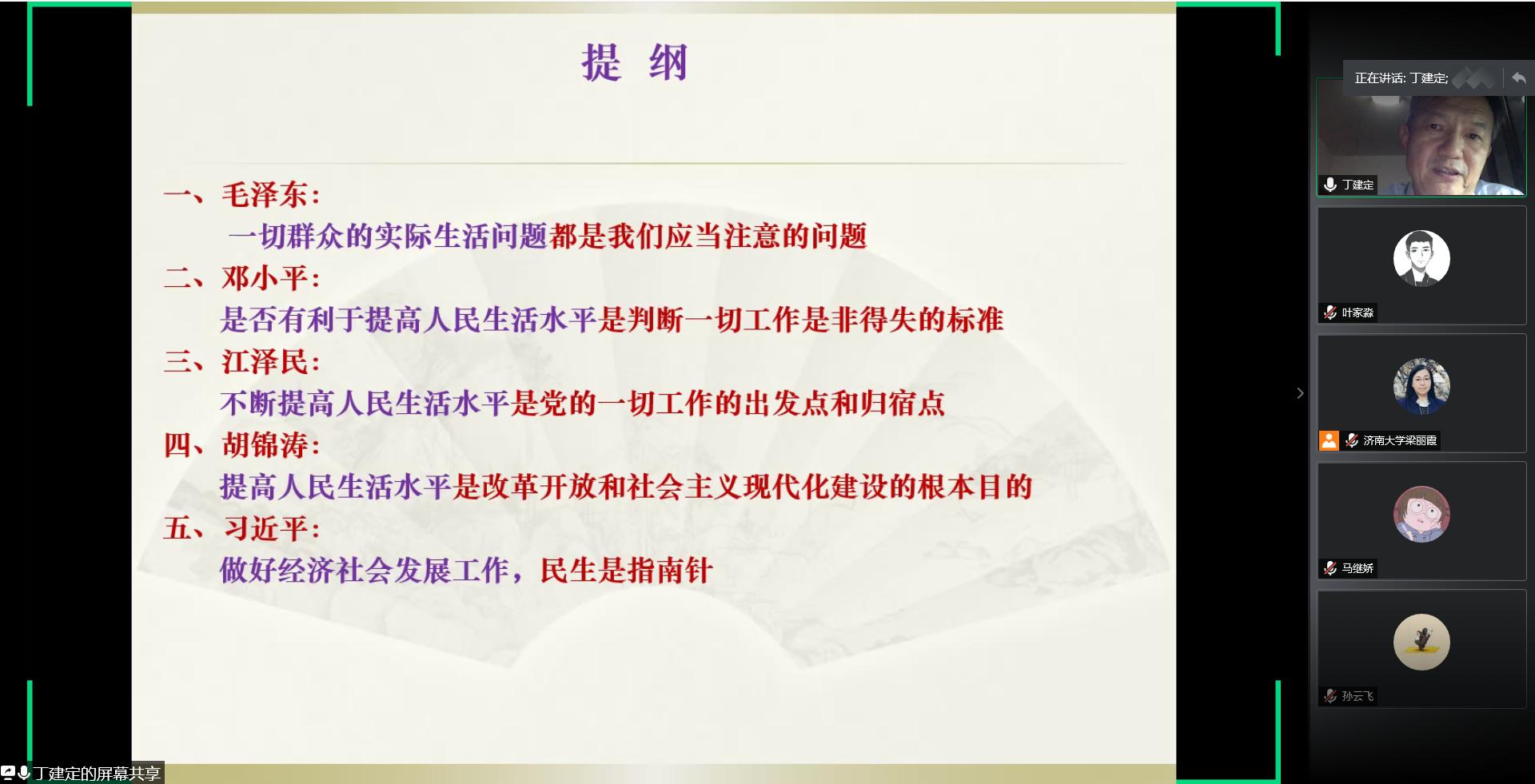 8月3日,我院2020暑假系列云讲座第五期在腾讯会议顺利举行。活动邀请华中师范大学社会学院院长、博士生导师丁建定教授做题为《从毛泽东到习近平:中国共产党对民生发展的认识》的主题讲座。讲座由必赢电子游戏网站院长梁丽霞教授主持,学院师生及相关学者300人在线参加。