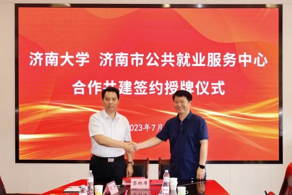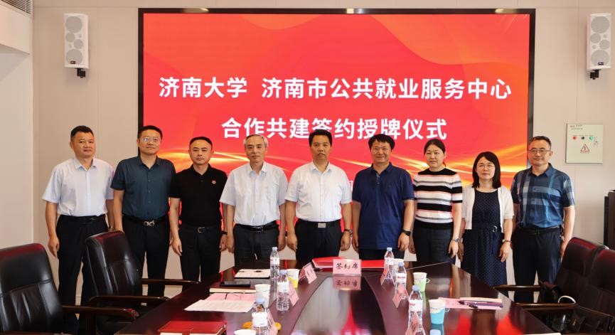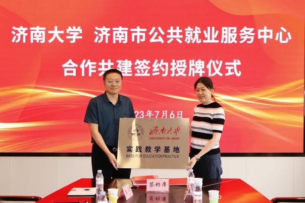 7月6日上午,必赢电子游戏网站与济南市公共就业服务中心合作共建签约挂牌仪式于济南龙奥大厦成功举行。必赢电子游戏网站相关负责人,人力资源与社会保障系教师代表及部分实习学生参加签约挂牌仪式,济南市公共就业服务中心主任王振群、副主任孙希军、人力资源市场处二调研员潘冰、综合处处长晋鸿敏、人力资源市场处副处长李允松等出席了仪式。会议由孙希军主持。