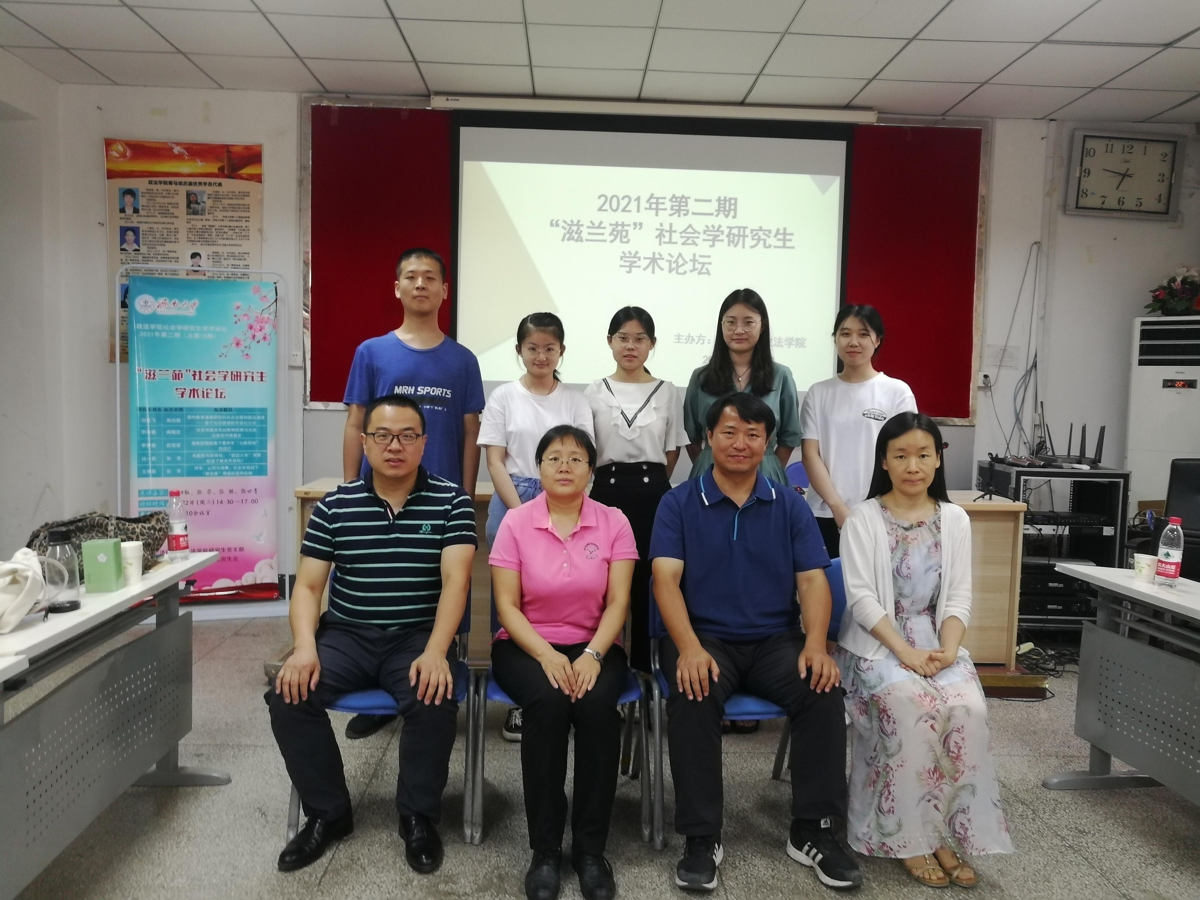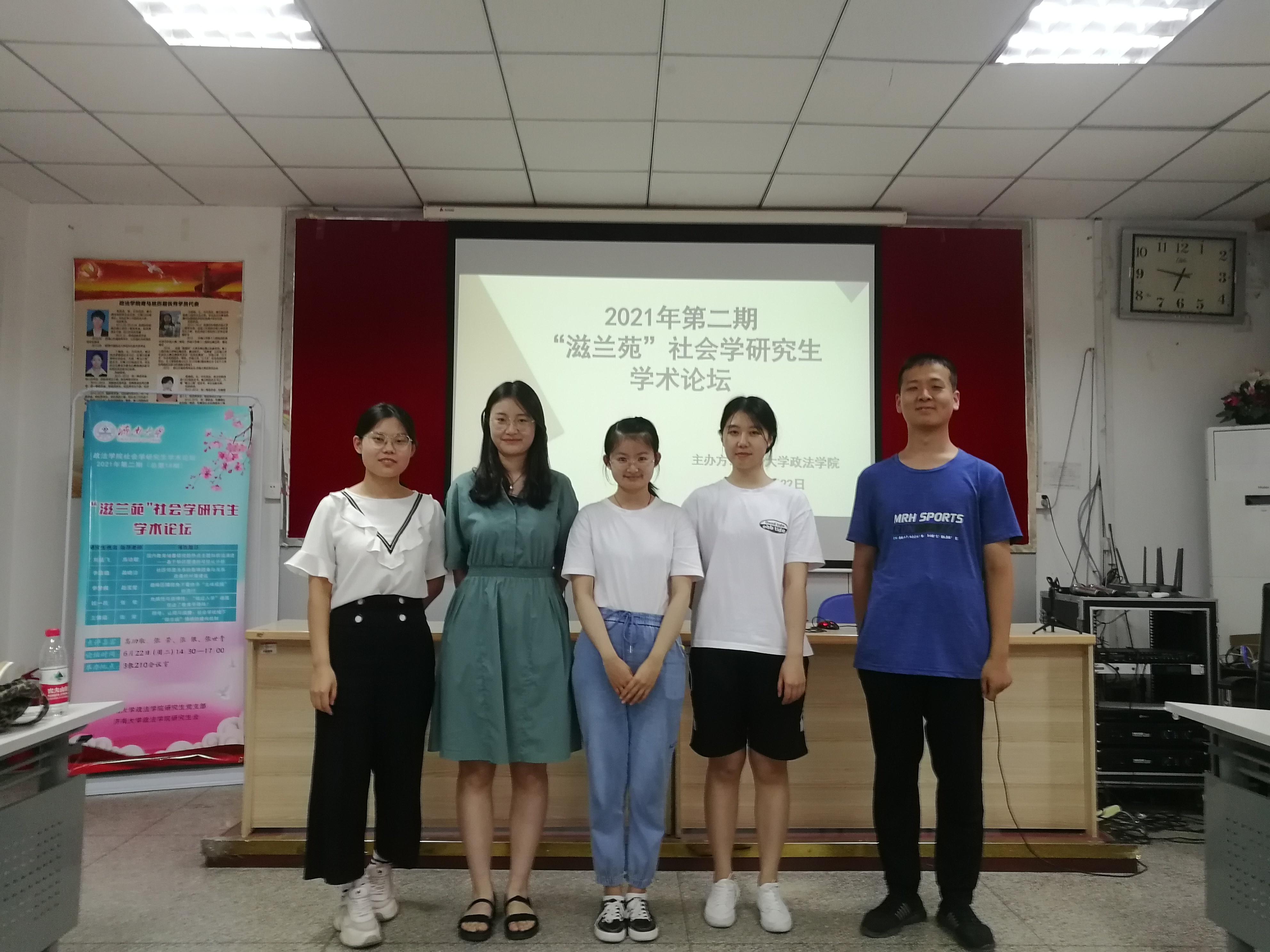 我院研究生党支部和研究生会于2021年6月22日下午在三教210会议室举办2021年第二期(总第18期)“滋兰苑”社会学研究生学术论坛。本次论坛邀请高功敬教授、张荣教授、张银副教授、张世青副教授做点评嘉宾,社会学全体研究生参加论坛,院研究生会竞赛部李佳鑫同学担任主持人。