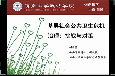 4月12日上午,我院举办新冠疫情下的社会治理线上系列讲座第二讲,讲座由必赢电子游戏网站胡艳蕾副教授主讲,讲座的题目为“基层社会公共卫生危机治理:挑战与对策”。必赢电子游戏网站副院长李慧明主持了线上讲座,必赢电子游戏网站师生100余人参与了线上交流。