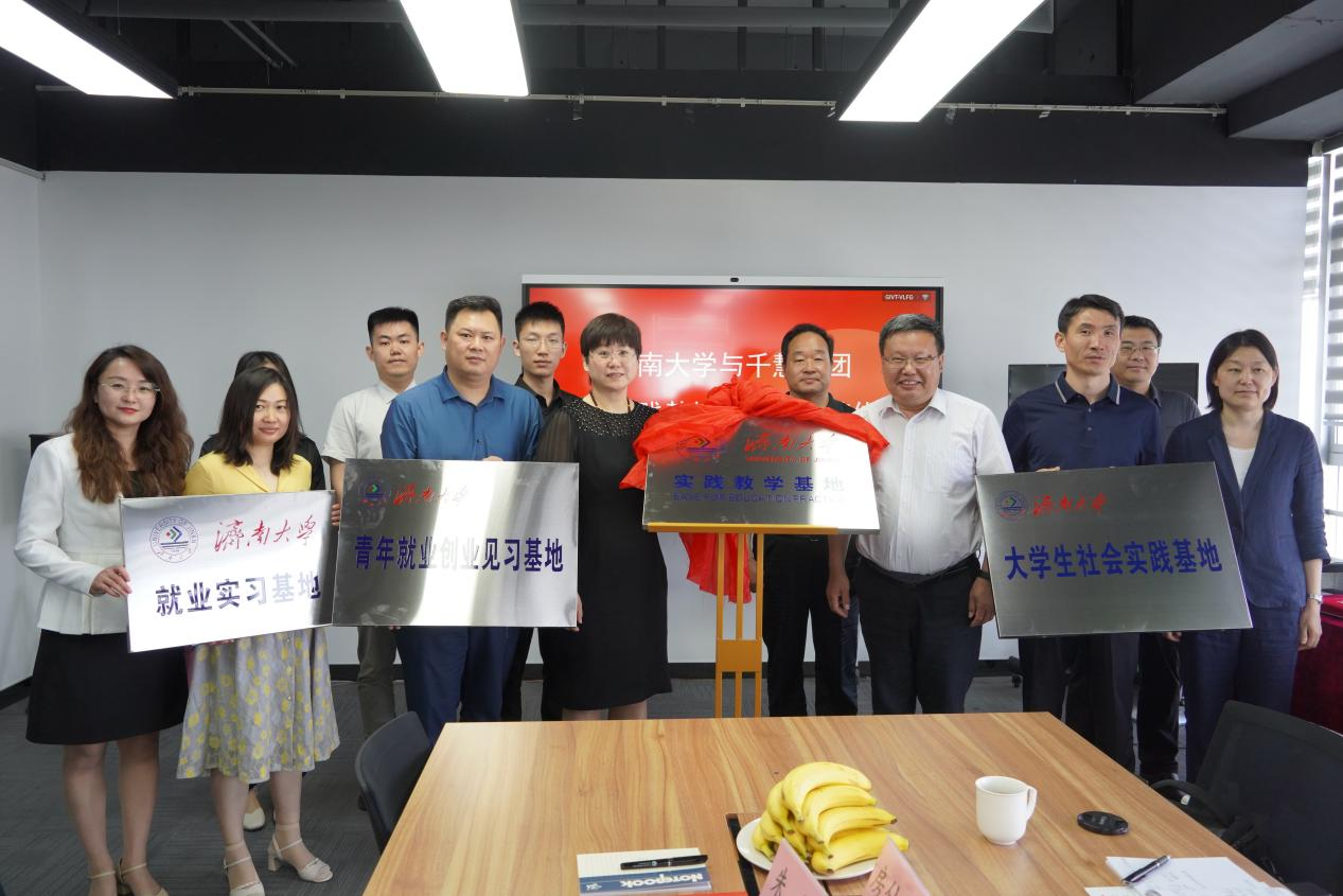 随后,徐庆国与李侠共同签署了济南大学实践教学基地建设协议书,李涛与邱迎迎共同签署了济南大学就业实习基地协议、青年就业创业见习基地协议、济南大学社会实践基地协议。学院相关领导与企业负责人共同为“济南大学就业实习基地”“济南大学青年就业创业见习基地”“济南大学实践教学基地”“济南大学大学生社会实践基地”等揭牌。学院与千慧集团就下一步人才培养、学生社会实践、实习实训等事宜进行了深入的磋商。杨晓松指出,未来千慧集团将继续敞开怀抱,吸纳济大学子加入,并通过社会实践基地和就业实习基地建设参与学生职场认知培养,为推动新文科建设贡献千慧力量,也希望以此次活动为契机提升双方合作层次,创造知识产权-法律硕士专业人才培养新模型。