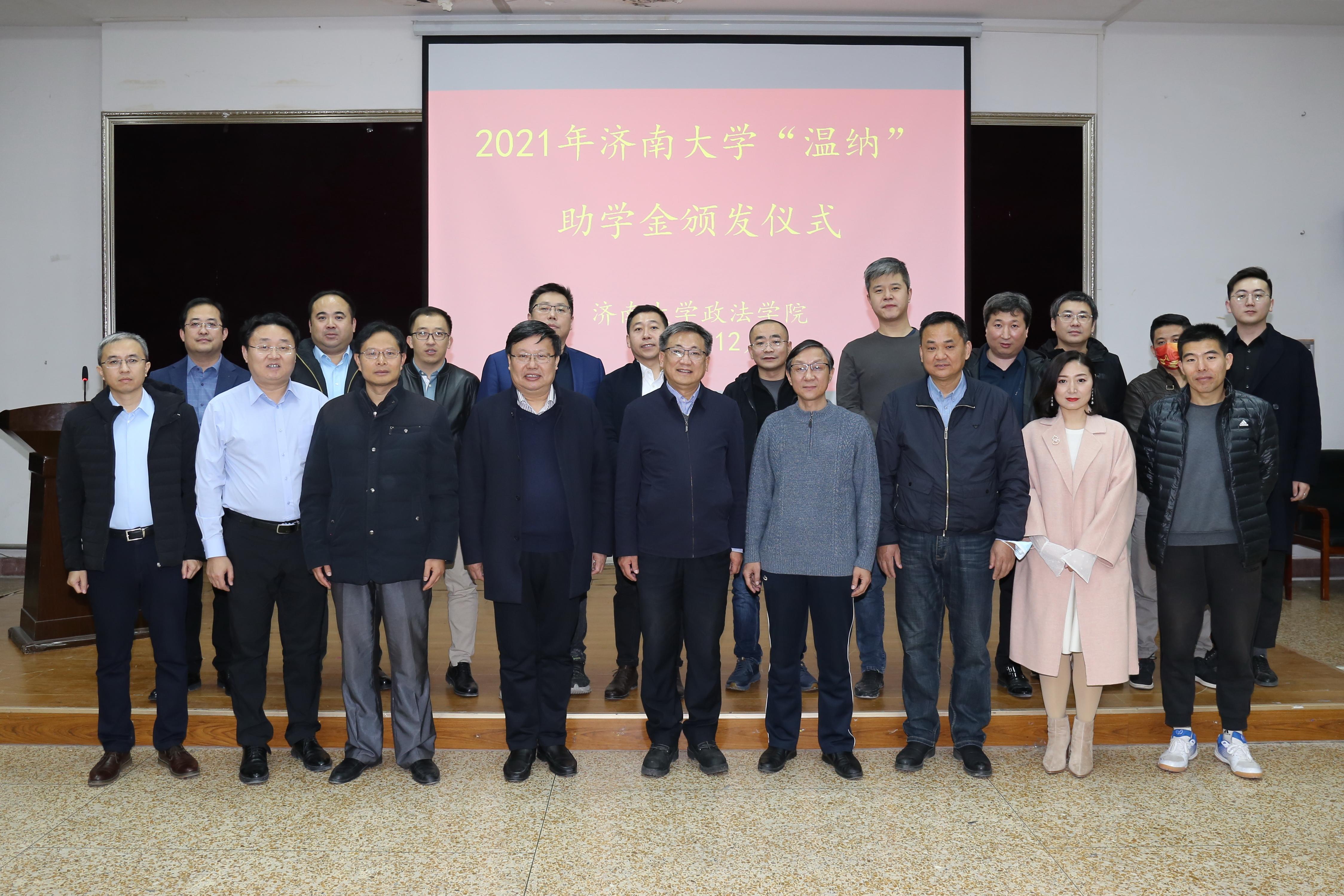 为庆祝济南大学法学专业创建二十周年,12月8日必赢电子游戏网站举办“温纳助学金”颁奖仪式暨法学专业创建二十周年校友座谈会,不同时期在必赢电子游戏网站工作过的领导、教师代表,部分法学2001级、2002级校友代表和学校合作发展处(教育发展基金会办公室、校友工作办公室)负责同志参加了活动。