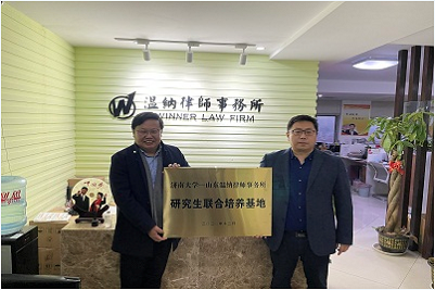 12月4日下午,我院与山东温纳律师事务所举行战略合作协议签约仪式暨研究生联合培养基地及实践教学基地授牌仪式。济南市市中区政协副主席刘健,我院2005届校友、山东温纳律师事务所创始合伙人武磊,我院党委书记徐庆国,学院副院长刘康磊一行参加签约授牌仪式。学院办公室主任李顺安、学院法律硕士管理办公室主任陈强、学院辅导员赵朔陪同参与活动。