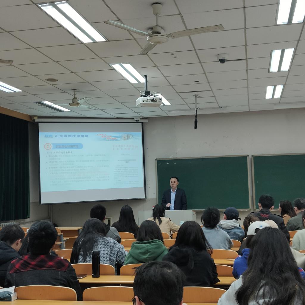 2021级认识实习之《依法管好用好医疗保障基金》讲座暨第24期“师生面对面”活动于4月21日晚在10教101成功举办。此次活动特邀省医疗保障局基金监督管理处处长神芳民担任主嘉宾,人社系副主任刘艳丽老师主持,必赢电子游戏网站党委徐庆国书记、系主任杨风老师、系党支部书记辛瑞萍老师同劳动与社会保障专业21级全体同学共同参加。