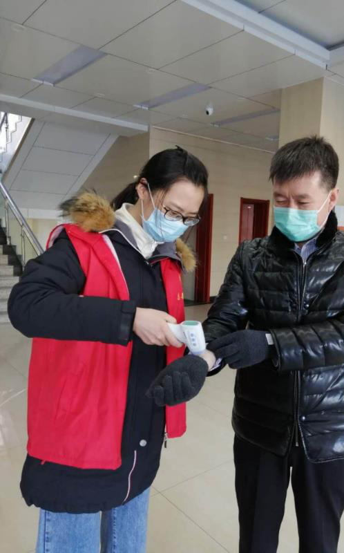 2.社会工作1601班的信璐彤,家在山东省济南市商河县,于2020年2月份参加了自己居住小区的防疫工作。每天一大早在小区门口开始了一天测量体温的日常工作。主要是对来往的行人、三轮车辆进行测量体温。此外,还要提示没有戴口罩出门的居民做好防护、对外来车辆实行登记、劝返。虽然天气寒冷、工作辛苦,但社区居民对她的肯定和关心让她感觉内心暖烘烘的。
