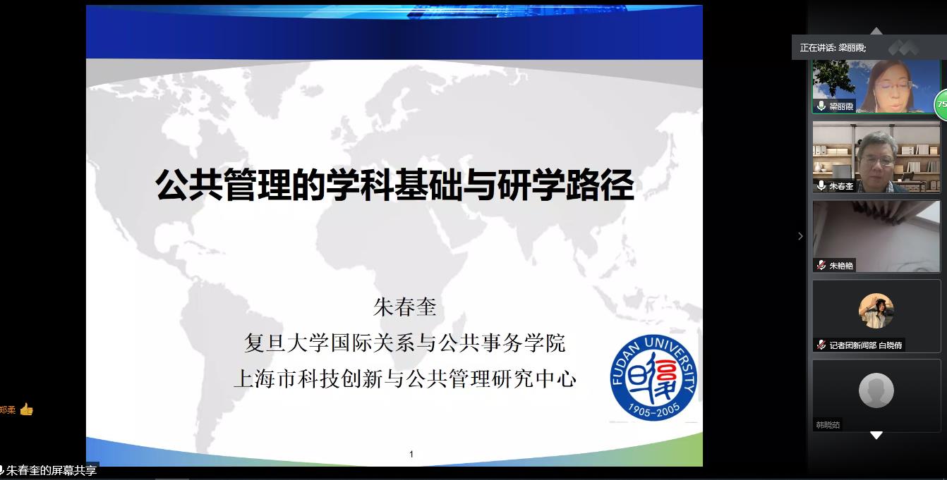 8月1日,我院2020暑期系列云讲座第四期在腾讯会议平台顺利举行。活动邀请复旦大学国际关系与公共事务学院教授、博士生导师朱春奎教授做题为《公共管理的学科基础和研学路径》的主题讲座。讲座由必赢电子游戏网站院长梁丽霞主持,学院师生及相关学者130多人在线参加。