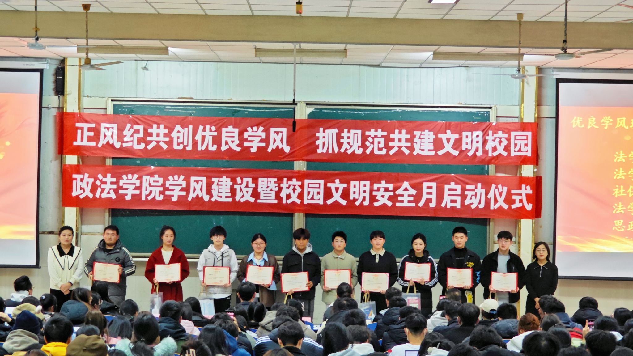学院学生工作办公室主任黄茜老师详细介绍了此次学风建设月活动方案,强调了校园安全对于学生健康成长的重要性,希望同学们养成严谨的治学作风、实事求是的科学态度,严格遵守学习纪律,注重自身健康成长,强化安全意识。仪式还对“优良学风班级”“十佳文明宿舍”进行了表彰奖励。