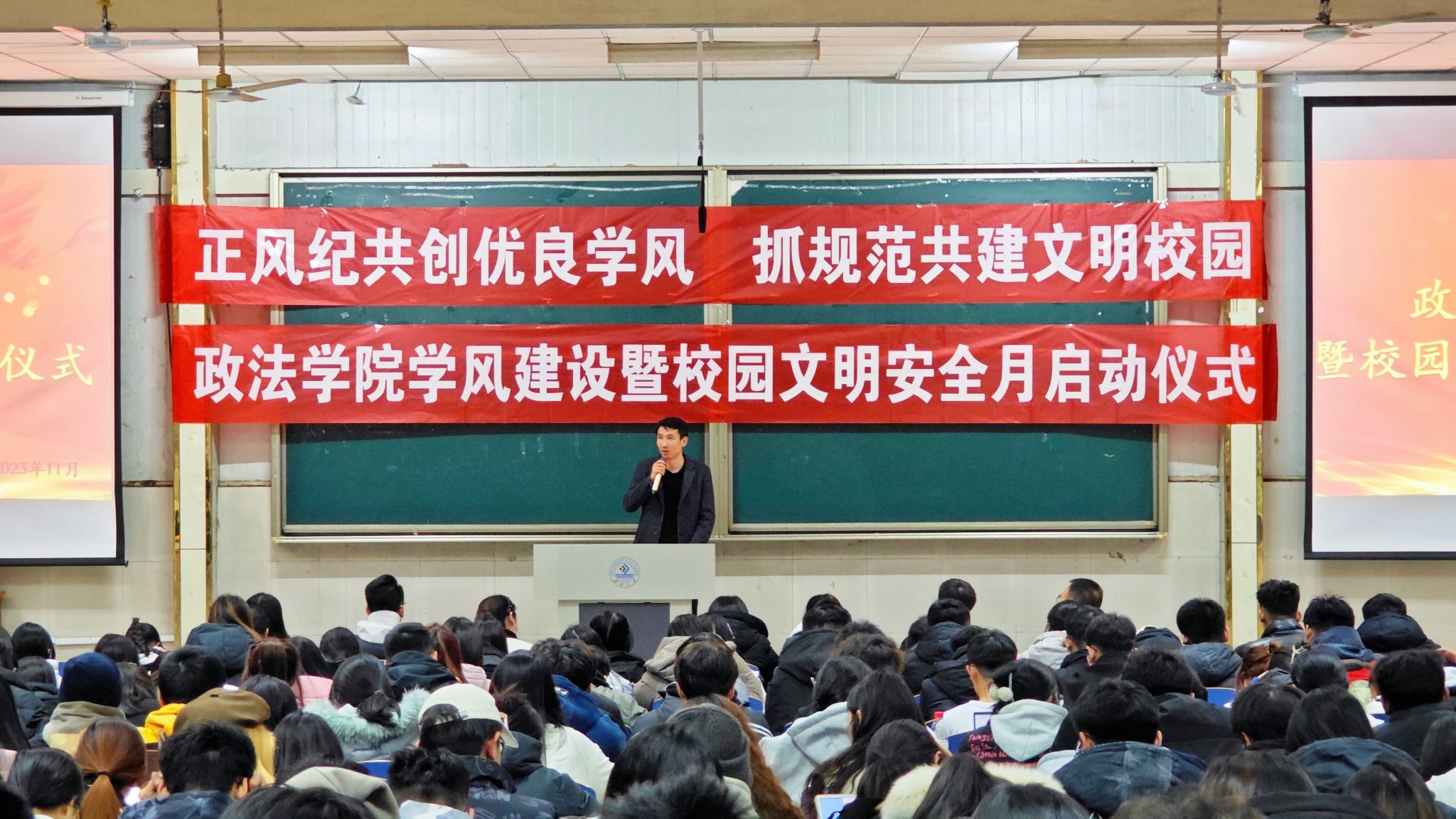 “正风纪共创优良学风,抓规范共建文明校园”,为保证必赢电子游戏网站教育教学秩序和教育管理活动有效进行,营造勤奋好学、严谨务实、安全文明的良好氛围,提高学生综合素质和人才培养质量。必赢电子游戏网站于2023年11月25日19点在星硕教室举办“学风建设暨校园文明安全月”启动仪式,必赢电子游戏网站党委副书记、副院长李涛,学生工作办公室全体辅导员老师,学院全体学生干部学生党员参加此次活动。