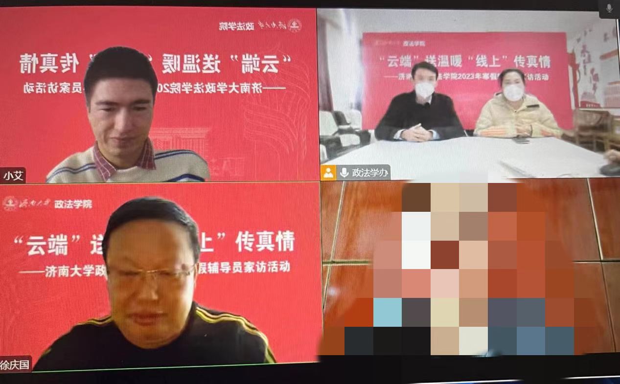 为贯彻落实学校“送温暖建平台,促就业助成才”为主题的2023年寒假辅导员家访活动要求,牢固树立以学生为本的育人理念,为学生提供更加适合的教育、服务和发展平台,促进学生健康成长和全面发展。2022年12月30日,必赢电子游戏网站党委书记徐庆国,院长高功敬,副书记、副院长李涛,院长助理李秀凤及辅导员老师们采用线上形式对部分家庭经济困难同学进行了家访。