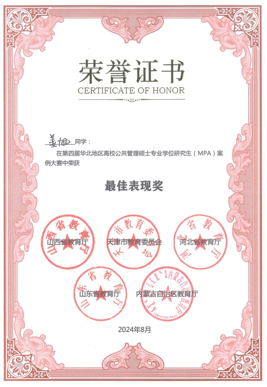 2024年8月24日,由教育部学位管理与研究生教育司、教育部学位与研究生教育发展中心、全国公共管理专业学位研究生教育指导委员会指导,山西省教育厅、天津市教育委员会、河北省教育厅、内蒙古自治区教育厅、山东省教育厅主办,山西大学承办的第四届华北地区高校公共管理硕士专业学位研究生(MPA)案例大赛在山西省太原市举行。