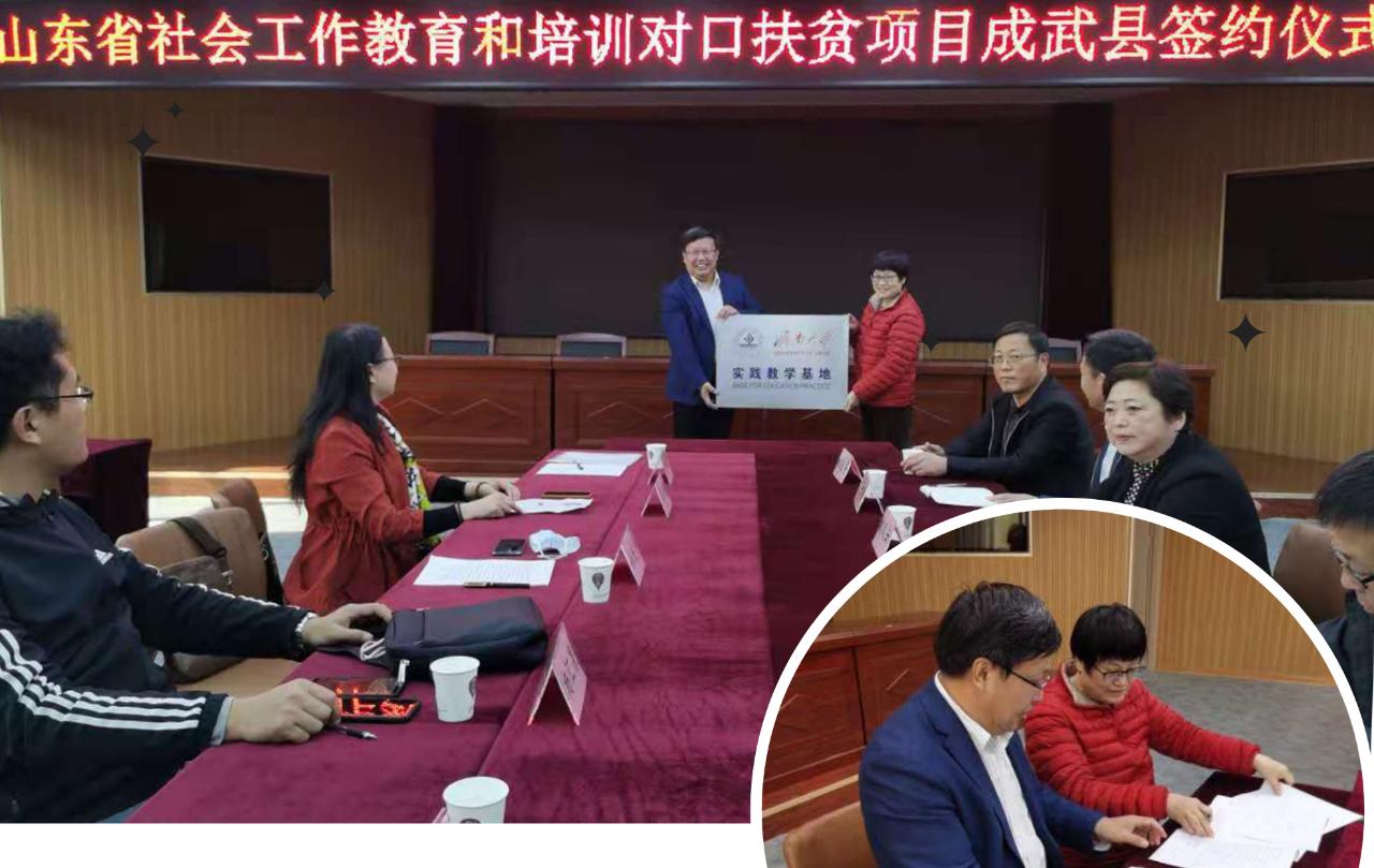 为落实和贯彻《山东省民政厅 山东省财政厅 山东省扶贫办关于支持社会工作专业力量参与脱贫攻坚的实施意见》,2020年11月7日,必赢电子游戏网站与成武县民政局在菏泽市成武县联合举办“山东省社会工作教育和培训对口扶贫项目成武县签约仪式暨座谈会”。