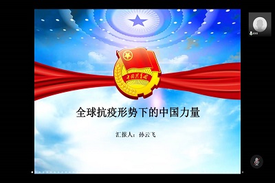 随后,校团委兼职副书记、必赢电子游戏网站国际政治系副主任孙云飞以“全球抗疫形势下的中国力量”为主题,从医务人员奋战、国家部署抗疫与人民抗疫三个方面进行开班第一课的主题分享。她以广阔的全球视角,展现了中国的大国风采与应有之义。最后,她希望同学们能够在川流不息的时间之河中谋划人生,创造历史,强调青马班的同学应该在百年未有之大变局下砥砺自我,寻找人生的意义,同学们都深受启发。