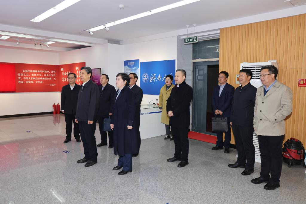 王艺华一行首先到学校“新时代文明实践中心”进行实地调研,参观了济南大学办学成就展和地方立法研究服务基地成果特展,详细了解和询问了济南大学近年来的办学特色、办学成就和地方立法研究服务基地的建设情况。