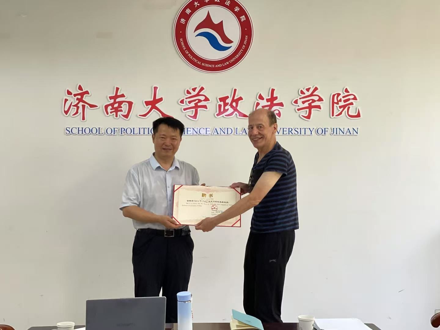 论坛分为两个环节。第一环节为聘任仪式,高功敬教授为史蒂夫·富勒教授颁发聘书,正式聘请富勒教授担任济南大学客座教授,并就未来的合作和交流表达了热切期望。