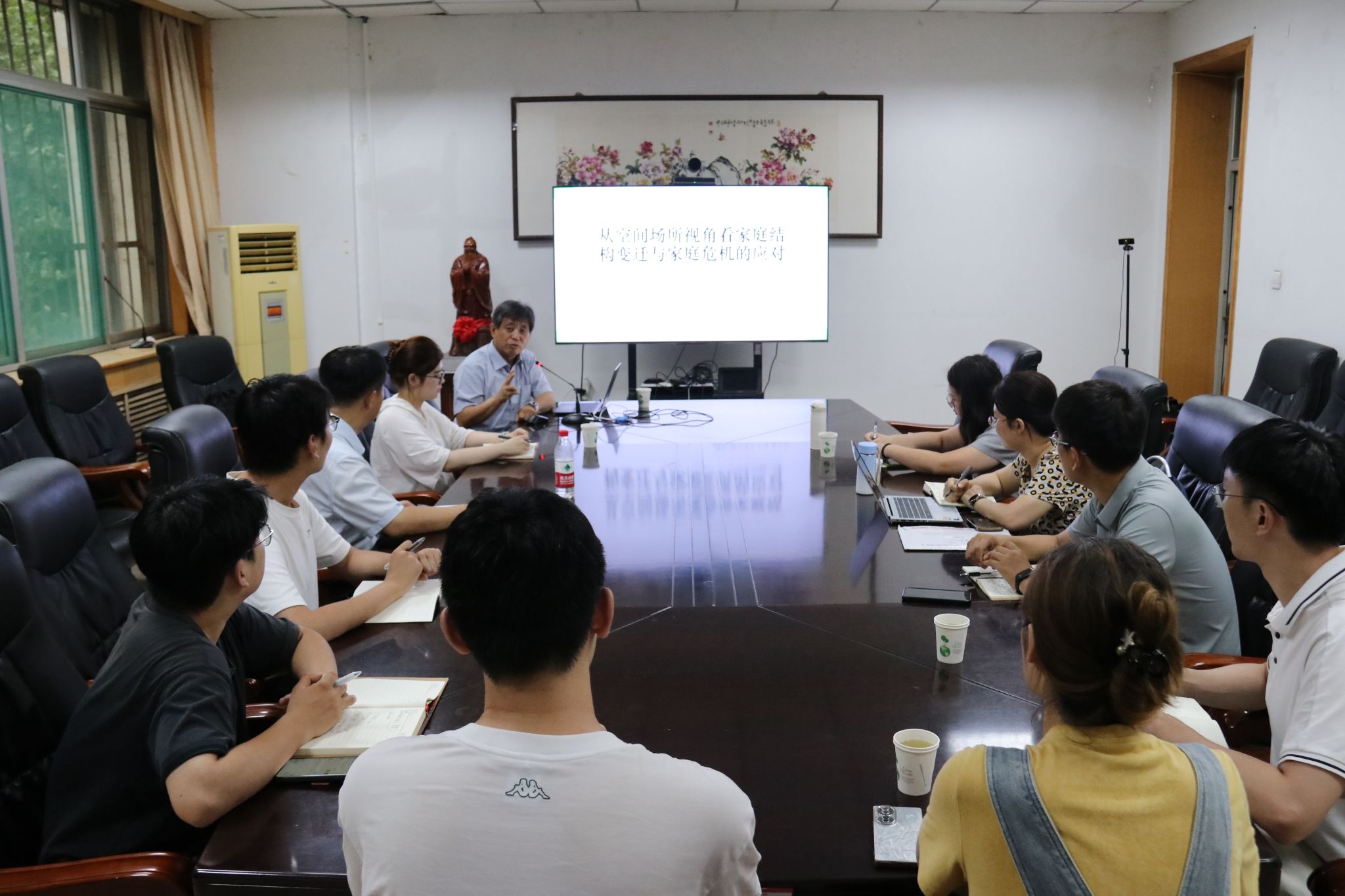 芮东根教授以“三体社会”的历史演变为时间脉络,从空间结构的视角揭示了社会结构从农业生产的“固态社会”到“液态社会”再向数字化“气态社会”演变的过程中家庭结构的因应变化。芮东根教授结合儒家文化和东亚四合院等居所设计特征,论证了居所的空间结构如何反映并巩固传统家庭关系。在系统介绍地域社会研究现状后,芮东根教授引入中日韩五年计划、60-70年代韩日经济崛起等案例系统梳理了研究模式的四个发展阶段:殖民地调查、国家战略主导模式、国际化视角、全球化-地方模式。他强调,研究山东乃至任何地域的发展问题,都需将其置于国家、国际、全球发展的视角下,避免陷入琐碎的地方叙事。