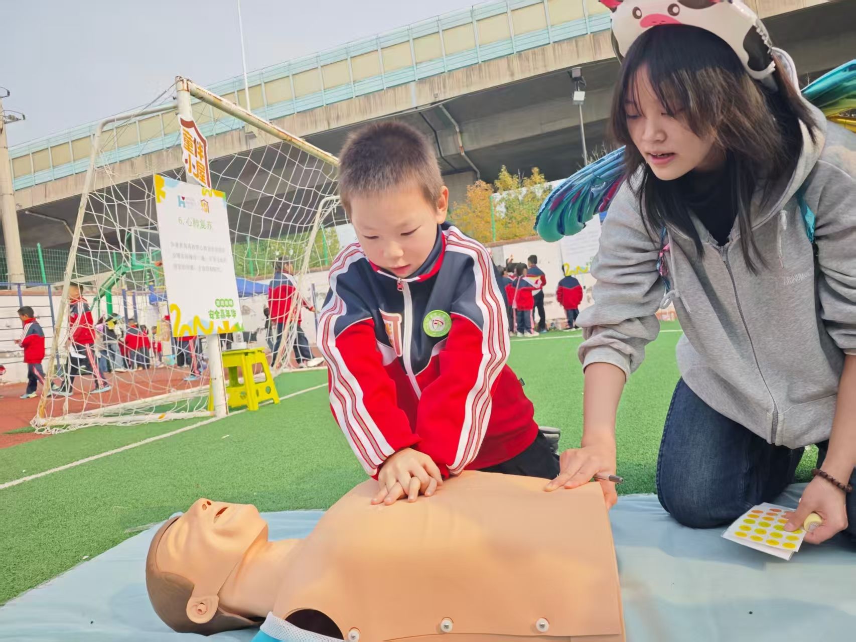 活动以“领券闯关集章”为载体,将安全知识转化为沉浸式体验。入口讲解处为孩子搭建“安全探索地图”;心肺复苏关卡的模拟按压与耐心计数,在传授急救技能时,种下“生命至上”的敬畏心;“逃离火兽”烟雾模拟与动作纠正,让火灾逃生口诀变为肌肉记忆的自救本能;“防拐骗”“交通安全”的角色扮演,用童趣方式筑牢辨别危险的“思想防线”。每枚印章、每句“安全小达人”的夸赞,都是对孩子勇气与知识的肯定,让安全教育从“被动听”转为“主动学”,现场热闹又不失成长温度。志愿者的耐心引导与细致陪伴,助力所有孩子顺利闯关的同时,将“安全第一”的意识深植于儿童记忆中,为他们的健康成长筑起了一道坚实温暖的“安全屏障”。